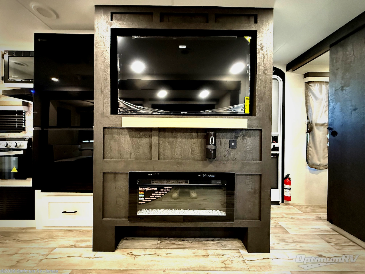 This travel trailer’s bunk beds are perfect for kids, providing ample sleeping space for the whole family. The wardrobes offer plenty of storage for your clothing and essentials.The sofa is a comfortable spot to relax, and the fireplace adds a cozy touch to the interior. The entertainment center is equipped with a 50” TV, perfect for family movie nights or enjoying your favorite shows on the go. The walk-in pantry provides ample storage for your food and snacks, while the 10 cu refrigerator keeps your food and drinks fresh. The sit n’ slide table is a fun and functional spot for meals and adds additional sleeping space. For convenience and comfort the walk-through bath provides easy access and convenience, while the overhead cabinets offer additional storage for your essentials. The front bedroom features a spacious queen bed and overhead cabinet. Head outside and unwind under the shade of the two exterior awnings and store everything you need in the pass-through storage offering ample space for your outdoor gear and equipment.