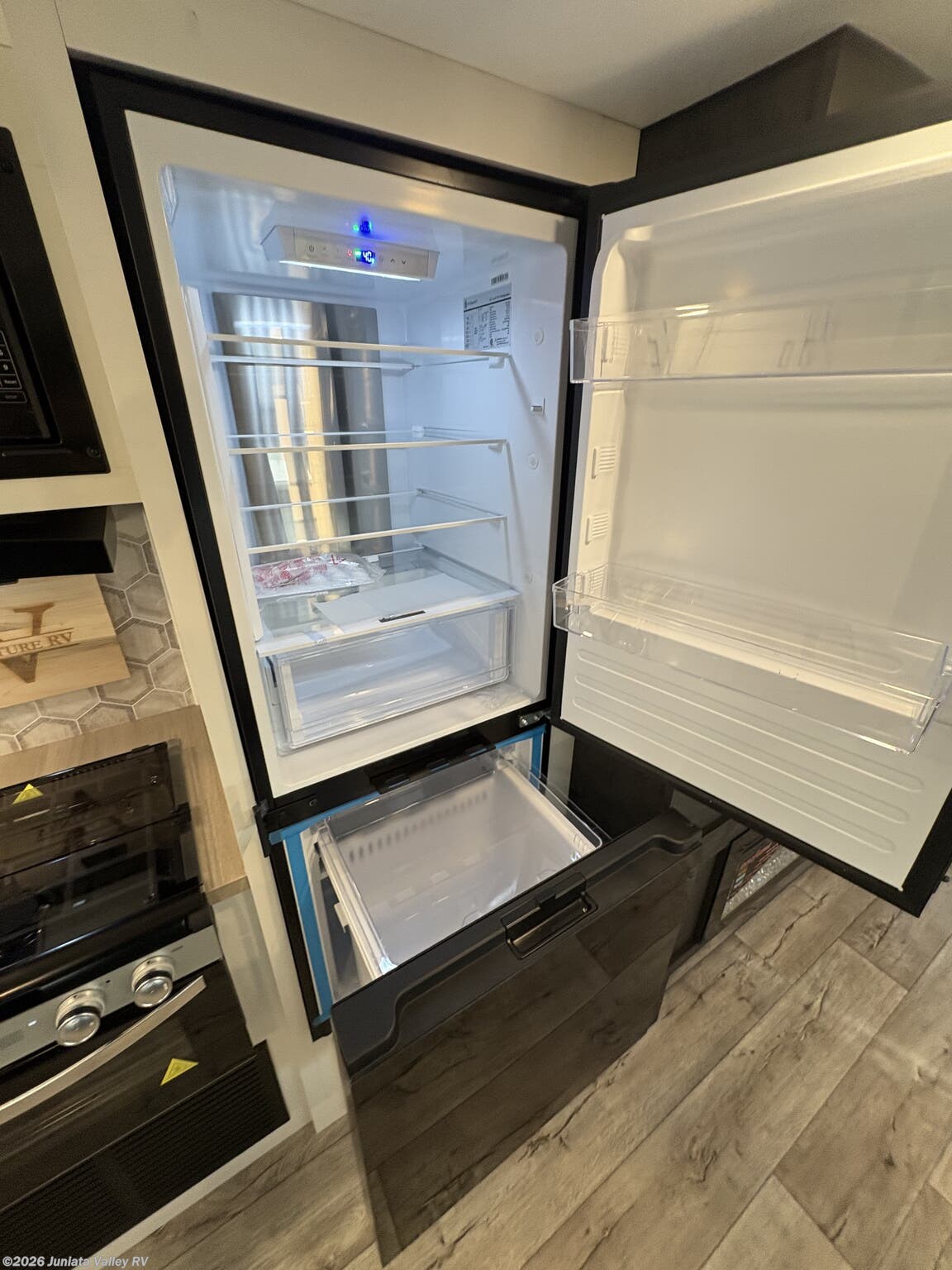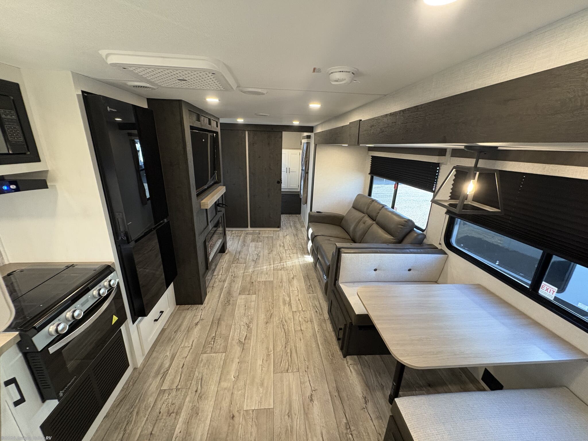 Prepare meals like at home with a complete RV kitchen that includes a microwave, oven, stove with a cover, and a 12V refrigerator. A separate water heater, tankless demand gas water heater, and modern lighting create a convenient, comfortable environment. Entertainment is ready for travel days and evenings with a smart TV, TV antenna, and cable prep, ensuring you stay connected no matter where you roam.