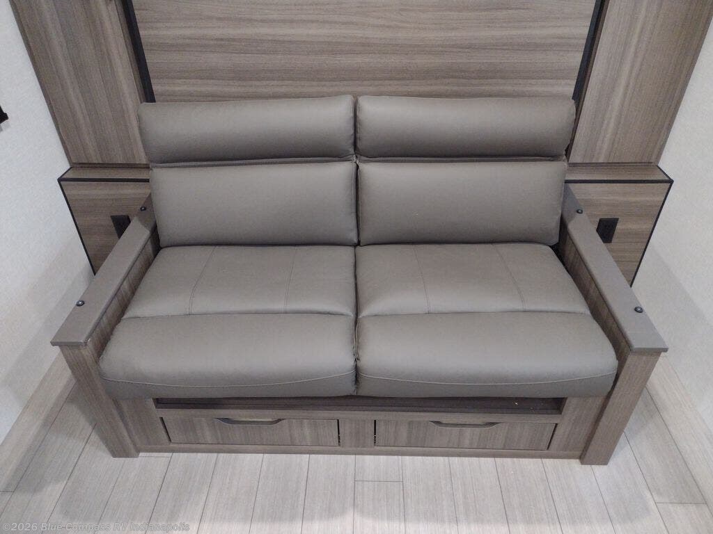 Head to your favorite RV park or campgrounds to join your friends for outdoor fun and relaxation! The 13' power awning gives you a place to meet and visit while being protected from the sun, and the pass-through storage with motion-activated light can hold your charcoal, outdoor games and chairs, plus fishing poles. The kitchen amenities provide everything you will need to make warm meals including an 8 cu. ft. refrigerator for drinks and leftovers, and the large sink makes washing dishes easier. There is sleeping space for six with bunk beds in the rear by the full bathroom, a versatile Murphy bed/sofa combination up front, and the U-shaped slide out. You will also appreciate the StorMore bedside nightstands and the Safe "T"ek box with a 110V outlet and USB charging to keep all the electronics up and running.