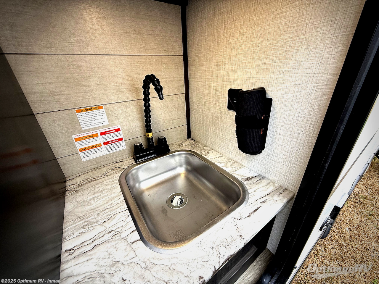 Every Venture RV SportTrek lightweight travel trailer is constructed to offer peace of mind and the comforts of home! Their purposeful residential kitchens are packed with handy features like a Furrion oven and three burner cooktop, a large stainless steel sink with a cover and dish drying rack, plus a 12V refrigerator. You will find plenty of storage throughout, including Safe-Tek hidden storage with a charging center and StorMore nightstands on either side of the bed behind the full-length closets. And the magnetic slam-latch baggage doors and spacious pass-through storage area will hold your outdoor gear in place. They even come with a hot and cold exterior shower and SporTrek's Weather Shield which includes a forced air heated and enclosed underbelly, high output A/C ducting, and more features that will let you extend your camping season. You will also love the new residential upgraded furniture, Serta memory foam mattress, barn style passage doors, and many more comforts!