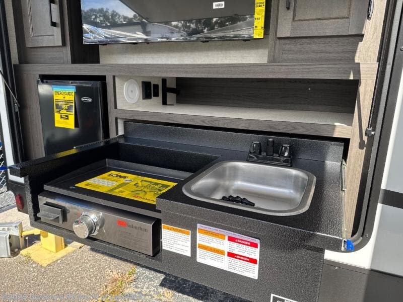 Every Venture RV SportTrek lightweight travel trailer is constructed to offer peace of mind and the comforts of home! Their purposeful residential kitchens are packed with handy features like a Furrion oven and three burner cooktop, a large stainless steel sink with a cover and dish drying rack, plus a 12V refrigerator. You will find plenty of storage throughout, including Safe-Tek hidden storage with a charging center and StorMore nightstands on either side of the bed behind the full-length closets. And the magnetic slam-latch baggage doors and spacious pass-through storage area will hold your outdoor gear in place. They even come with a hot and cold exterior shower and SporTrek's Weather Shield which includes a forced air heated and enclosed underbelly, high output A/C ducting, and more features that will let you extend your camping season. You will also love the new residential upgraded furniture, Serta memory foam mattress, barn style passage doors, and many more comforts!