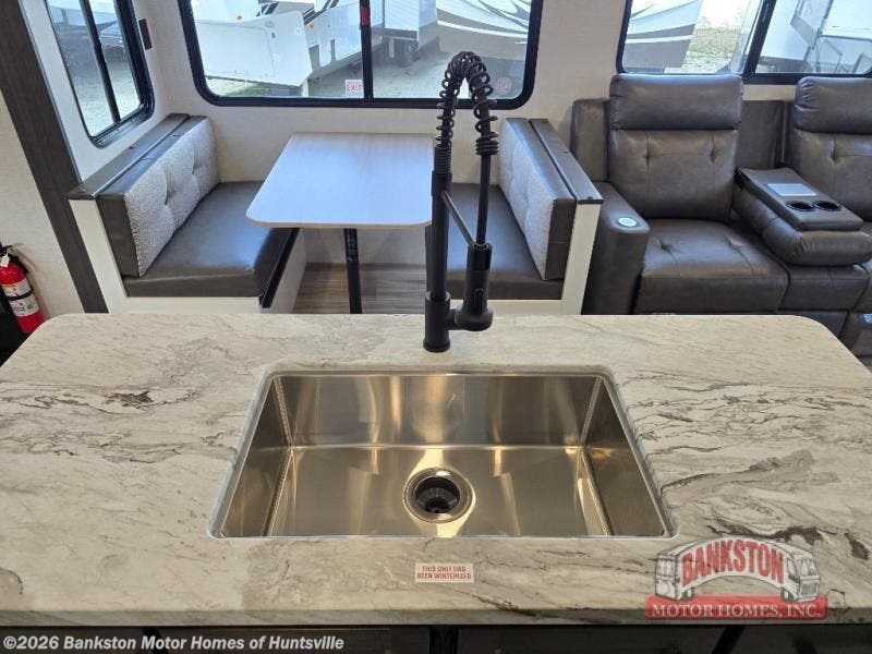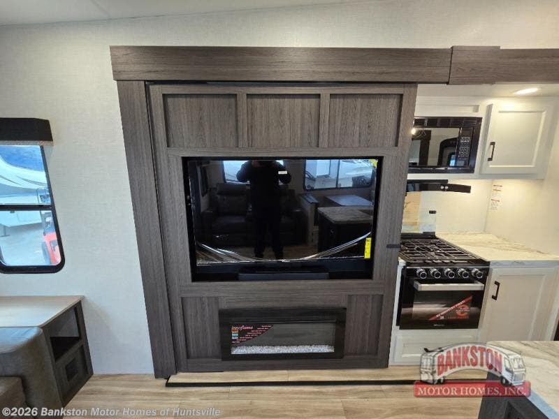 Experience travel redefined with the Venture RV SportTrek Fifth Wheel, where modern design meets everyday comfort. The painted fiberglass front cap with integrated LED lighting gives this RV a bold, aerodynamic look while enhancing visibility on the road. Inside, unwind in the living area with a 5,000 BTU electric fireplace, creating the perfect ambiance after a day of adventure. The JBL sound bar with a Bluetooth Flip speaker delivers premium audio inside and out, making entertainment effortless wherever you roam. And with a tankless water heater, you’ll enjoy endless hot water for showers and cleaning, ensuring that every journey feels just like home.