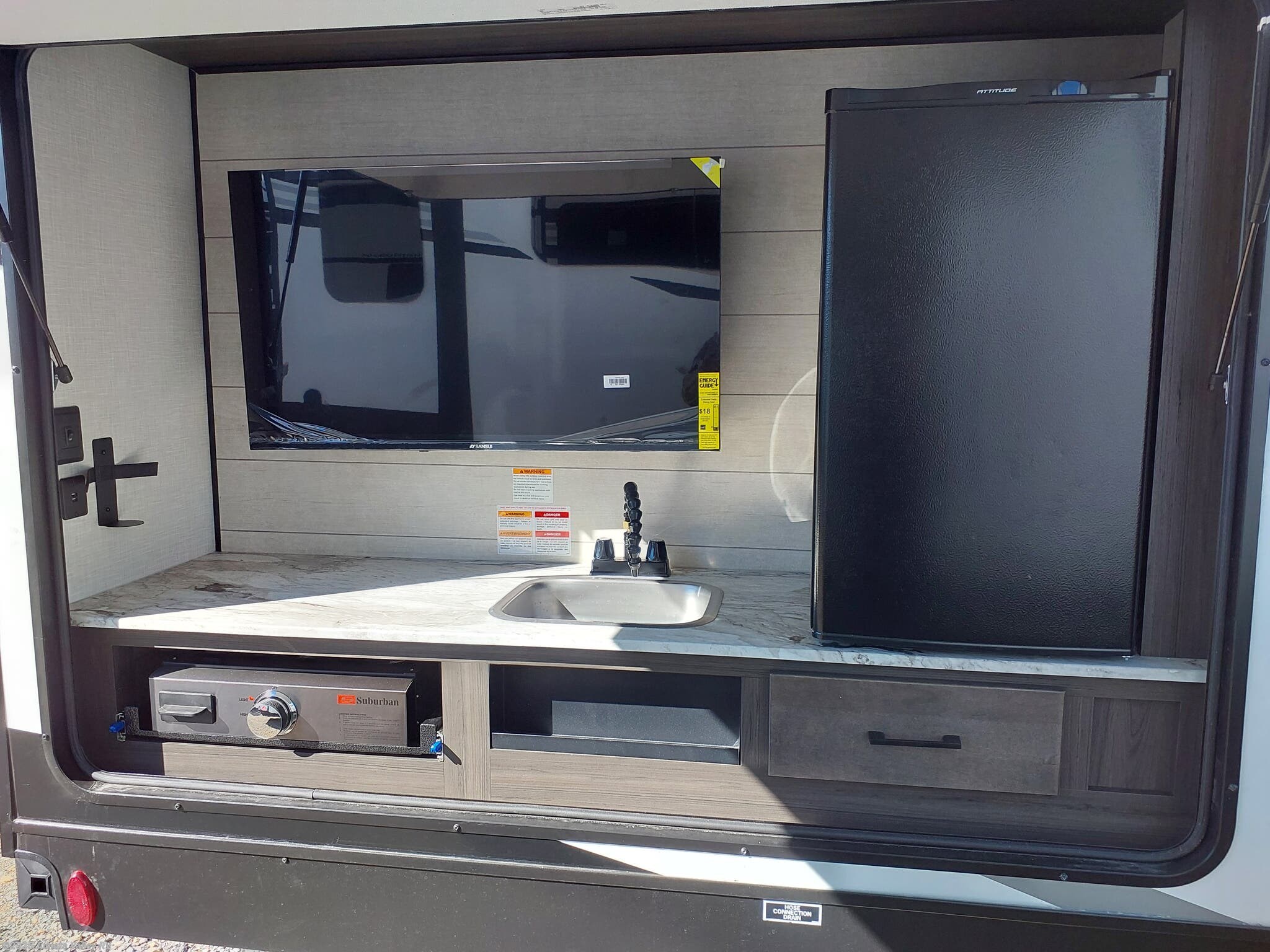 Backup Camera, LED Lights, LP Detector, Propane, Smart TV, Smoke Detector, Sound Bar, TV -