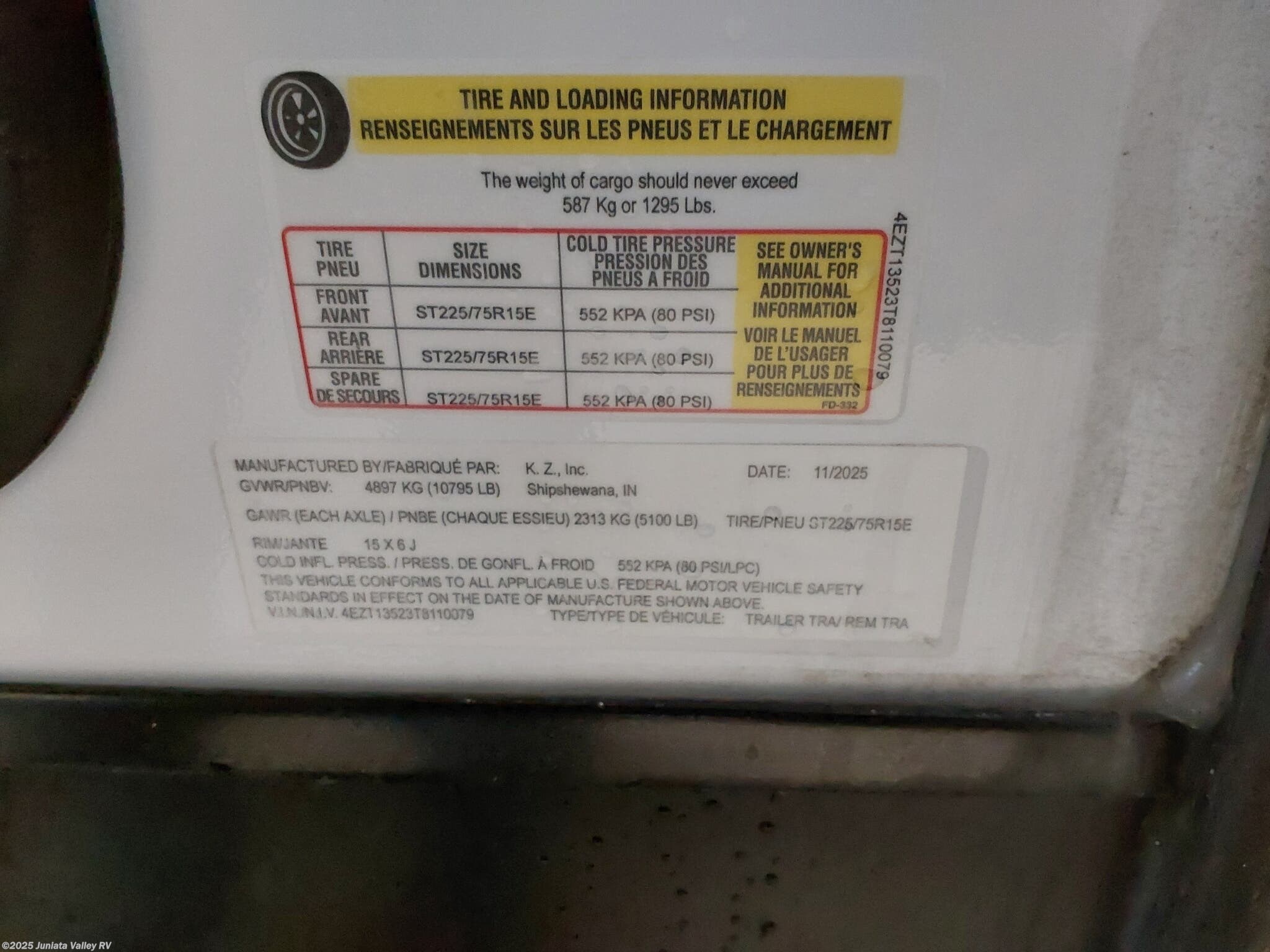 Awning, Black Tank Flush, Detachable, Detachable Power Cord, Electric Jack, Enclosed Underbelly, External Shower, Fiberglass Sidewalls, Heated Underbelly, Hitch, Ladder, Leveling Jacks, Outside Kitchen, Power Awning, Power Hitch Jack, PVC Roof, Roof Vent, Screen Door, Skylight, Slideout, Spare Tire Kit -