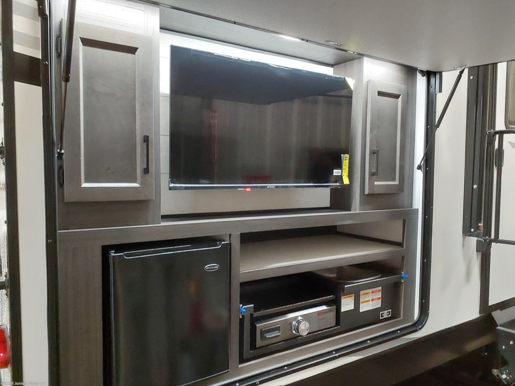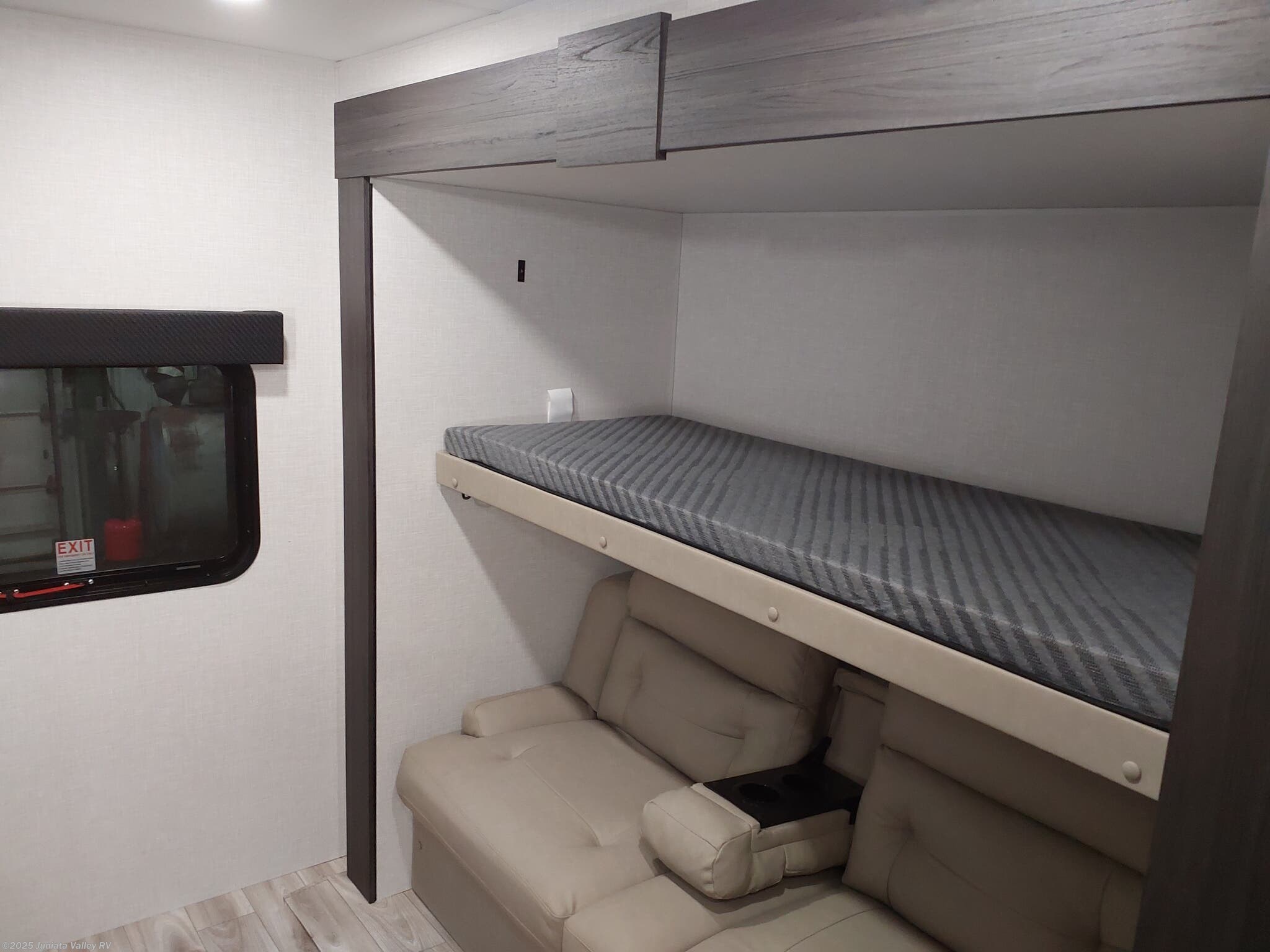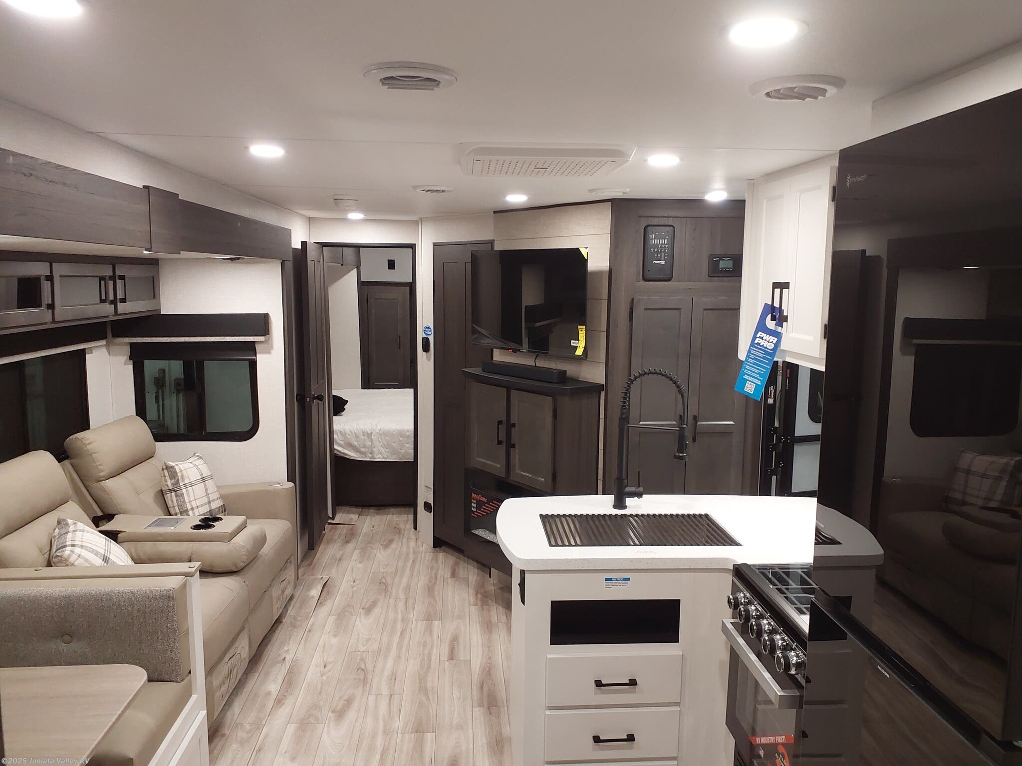 This travel trailer stands at the intersection of luxury and practicality. The spacious interior, enhanced by three slideouts and a dedicated theater seating arrangement, creates a welcoming living area that rivals many motorhomes on the market. Modern comforts like a washer/dryer, a full residential kitchen, and a cozy fireplace ensure you don’t sacrifice daily conveniences while exploring. Off-grid readiness is supported by a solar panel and a robust 15K BTU air conditioner to maintain comfort in various climates. With dependable towing, a bumper-pull hitch, and durable construction, the STT343VBH is an excellent choice for families who crave freedom without sacrificing quality. It’s also backed by smart features like a backup camera and a comprehensive water-management system for easy maintenance on the road.