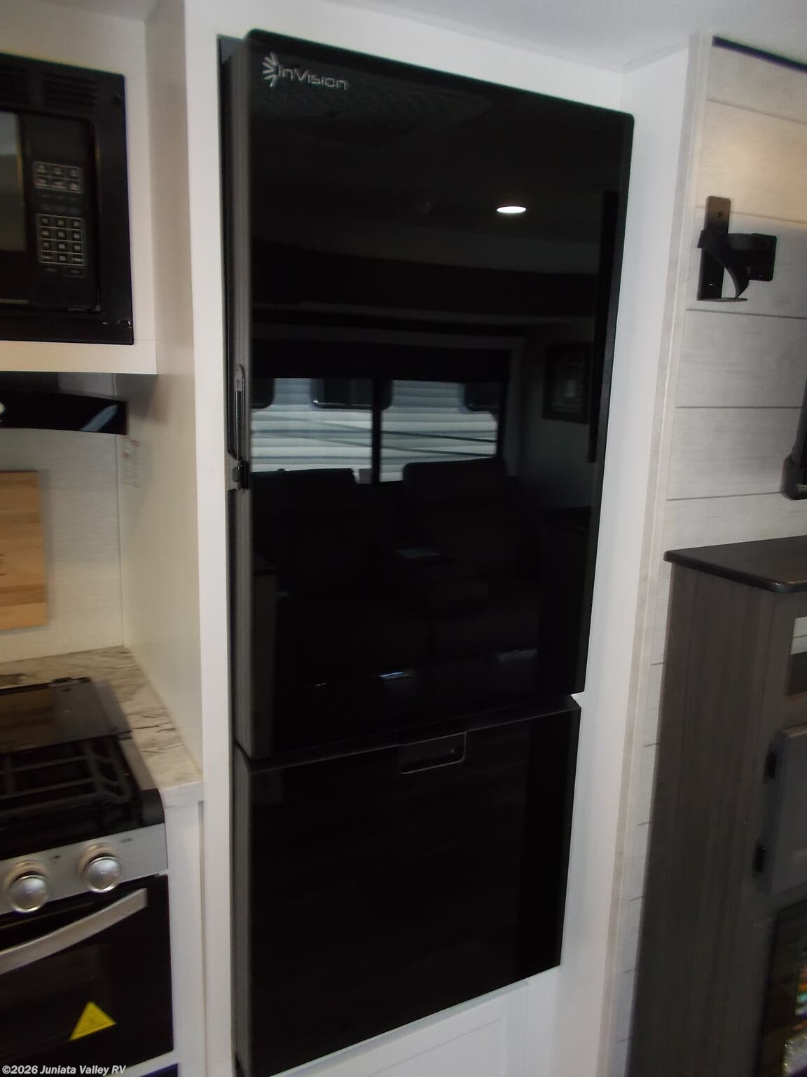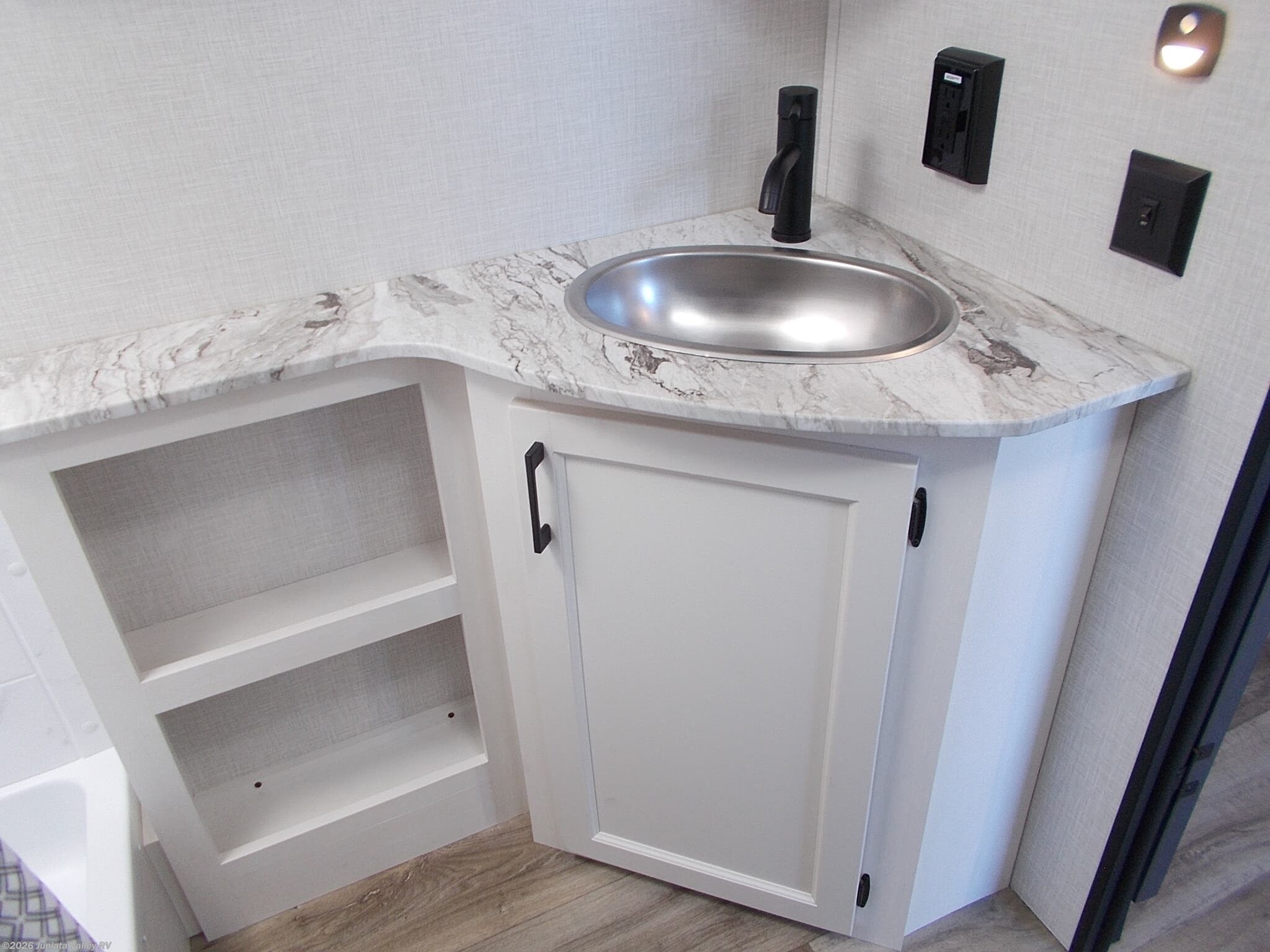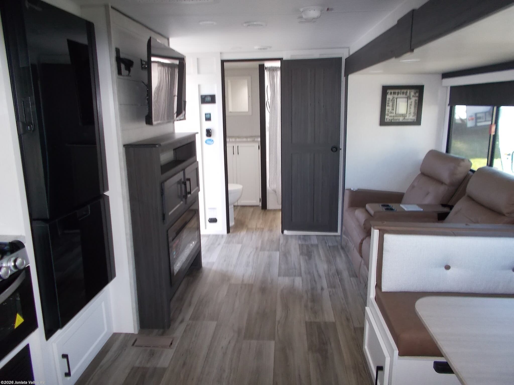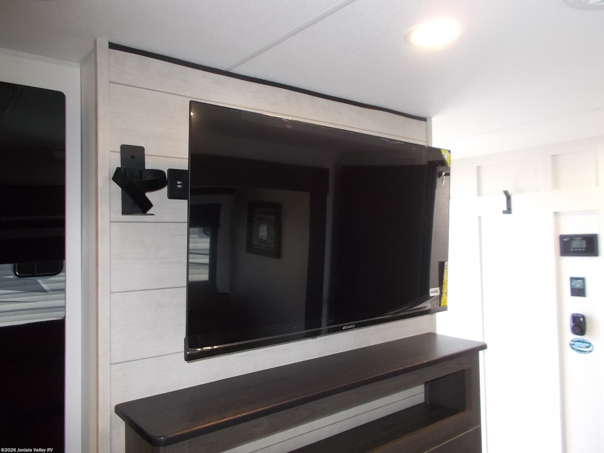 Inside, you’ll find a well-appointed layout that sleeps up to four, providing a comfortable home away from home for families or small groups. The SR261VRB features a queen mattress, a practical dinette, and a convenient pantry for groceries and snacks on the go. The kitchen is equipped with essential appliances to keep meal prep simple and enjoyable, including a microwave, oven, refrigerator, and a reliable water heater for hot showers after a day outdoors. For entertainment, there is a Smart TV along with a separate TV, ensuring everyone can enjoy their preferred programs whether you’re bunking down in the master or lounging in the living area.