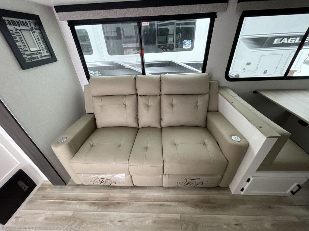 You're going to feel right at home in this Stratus single slide unit! There is not only a fully equipped kitchen with a three burner cooktop, but also an outside campfire café with a griddle, refrigerator, sink, and enjoy a snack with the gang under the 18' awning for your entertainment. As you enter the unit, you will notice to the right a walk-in pantry with coat hooks, and to the left is the full rear bathroom with a 30" x 36" shower, a three door linen closet, and a cabinet prepped to add an optional washer and dryer. If mother nature rains on your parade, then relax inside on either the 70" sofa or the sit n' slide table dinette across from the entertainment center.