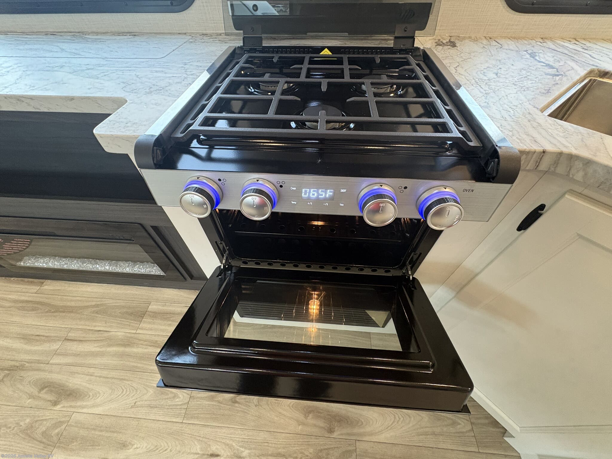 - Safety and convenience: CO, LP, and smoke detectors; fire extinguisher; LED lighting; enclosed underbelly; and external shower