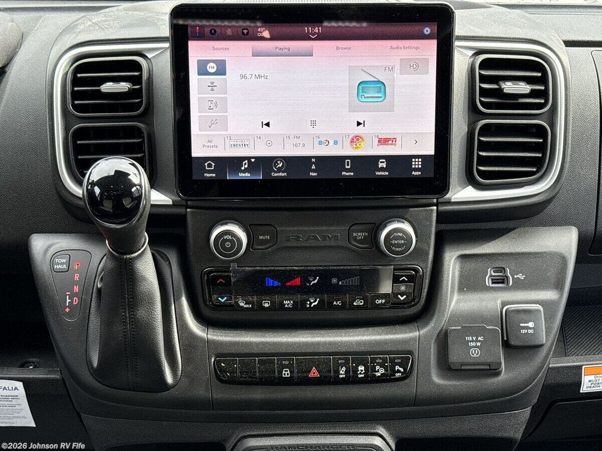 Introducing the 2026 Westfalia Wave SRT, a New Class B RV that combines luxury, comfort, and advanced technology for adventure enthusiasts. This Westfalia Wave SRT is designed on the robust RAM Promaster 3500 Van with a 159-inch wheelbase, powered by a 3.6L V6 Gas Engine paired with a 9-speed automatic transmission. With only 25 miles on the odometer, it's ready to take you on unforgettable journeys. The exterior of the Westfalia Wave SRT is equipped for adventure, featuring a 3500# Hitch Rating for towing needs. Safety is paramount with advanced features that include: - Adaptive Cruise Control with Stop & Go - Blind Spot and Cross Path Detection - Collision Warning and Driving Assist - 360 Surround View Camera - Lane Departure Warning Plus - Park Assist - Power Heated Mirrors - Remote Start - Tire Pressure Monitoring Inside the cab, you'll find modern features to enhance your driving experience, including: - HD Radio - Uconnect 5 with a 10.1-inch Display - Voice Command - Apple CarPlay and Android Auto Integration - Wireless Charging Pad The living space is designed for comfort with: - An 11.5-foot Power Awning - Power Entry Step for easy access - 6-foot 2-inch Standing Height - Side-Door Sliding Screen - 10 Interior Windows and Skylight - An abundance of storage with 17 Cabinets/Drawers For dining convenience, the RV is equipped with: - An Adjustable Swivel Table - Solid Surface Countertop with Pop-Out Extension - Stainless Steel Sink with Cover - 12v 3.2cf Compressor Refrigerator - 2-Burner Cooktop with Flush Cover - 0.7cf Microwave Oven Electronics and connectivity are top-notch, featuring: - Firefly Touch Systems Control - Bluetooth and App Control - LP CO and Smoke Detectors - Device USB Charge Ports - 4G LTE Wi-Fi Hotspot Sleeping arrangements are versatile, offering multiple bed combinations to suit your needs. The bathroom provides all the necessities with: - A Wet Bath including Sink and Shower - Cassette Toilet - Outdoor Shower option for convenience Mechanically, this RV is outfitted with: - 300w Solar Power - 30# LP Tank with Quick Connect - 30-Amp Detachable Service Cord - 600-Amp Lithium Batteries - Underhood Generator - 3000w Inverter - Truma Aventa Eco Roof 13.5k AC - 14.3k Truma LP Combi Eco Plus, offering both Furnace and Hot Water Start your adventures with the Westfalia Wave SRT—designed for explorers who crave the open road and all the comforts of home. ????