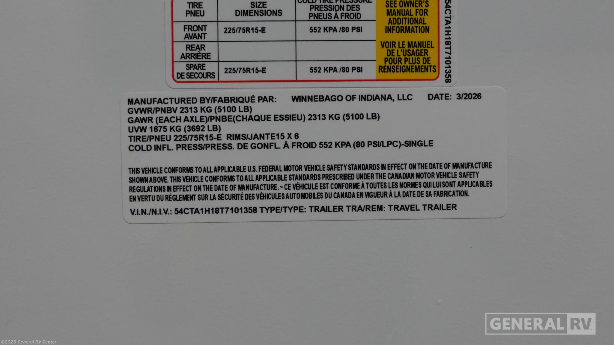 - Type Travel Trailer