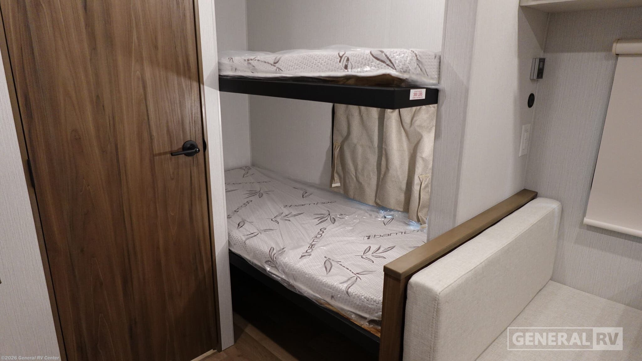 **Winnebago Access travel trailer 15BH highlights:** - Front Queen Bed - Booth Dinette - Single Axle - Bunk Beds - Storage Cubbies You'll love camping in this travel trailer with bunk beds for your guests or little ones! Once you've unloaded the exterior baggage doors, you can head inside to make lunch on the two-burner cooktop. There is also a microwave oven and a 3.3 cu. ft. 12V refrigerator for perishables. A booth dinette will provide a place to enjoy your meal at, and an additional guest can even sleep here if needed. After a day of exploring outdoors, you can freshen up in the private bath with corner floating shelves and a 30" x 36" shower! With any Winnebago Access travel trailer you will find thoughtful, clean, and contemporary designs filled with premium features that all have come to expect on any Winnebago towable. There are single and tandem axle models available, each with superior storage, durable construction, and spacious interiors. Each model features an NXG engineered frame, a one-piece TPO roof membrane, and durable sidewall metal, providing a long-lasting RV. The functional galley kitchen will make time at the campground easier than ever, and the stylish roller shades will provide privacy and shade when you need it!
