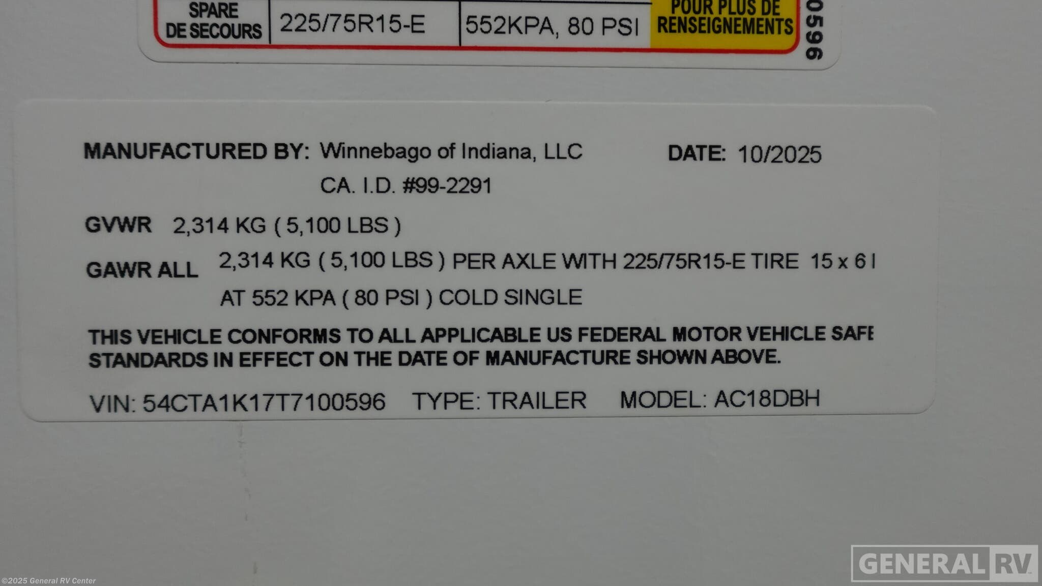 The 2026 Winnebago Access 18DBH is your ticket to unforgettable adventures with family and friends. Designed to make camping comfortable, affordable, and fun for everyone, the thoughtfully crafted 18DBH floorplan offers a residential queen-sized bed for parents to unwind, plus spacious 48" x 68" bunk beds that the kids will love. Make lasting memories together gathered around the cozy 38" x 68" dinette for meals, games, or planning your next excursion, and enjoy a roomy 30" x 36" shower that feels like home. With abundant storage throughout, the 18DBH has room for everyone’s essentials—from sports gear to cozy blankets—ensuring you’re always ready for a comfortable escape. The center kitchen and living area create an inviting space for gathering. The full-size refrigerator and two-burner cooktop make meal prep a breeze, whether you're whipping up breakfast or a gourmet dinner. With its powered retractable awning, the Access 18DBH extends your living space to the outdoors, perfect for enjoying the scenery or dining al fresco. Despite its compact 22.6-foot length, this RV is packed with features, including ample pass-through storage for all your gear. The automatic heater ensures comfort in any season, making this the ideal choice for year-round travel. Discover the freedom and flexibility of RV life with the Winnebago Access 18DBH. For more details or to see it in person, visit your nearest General RV dealership.