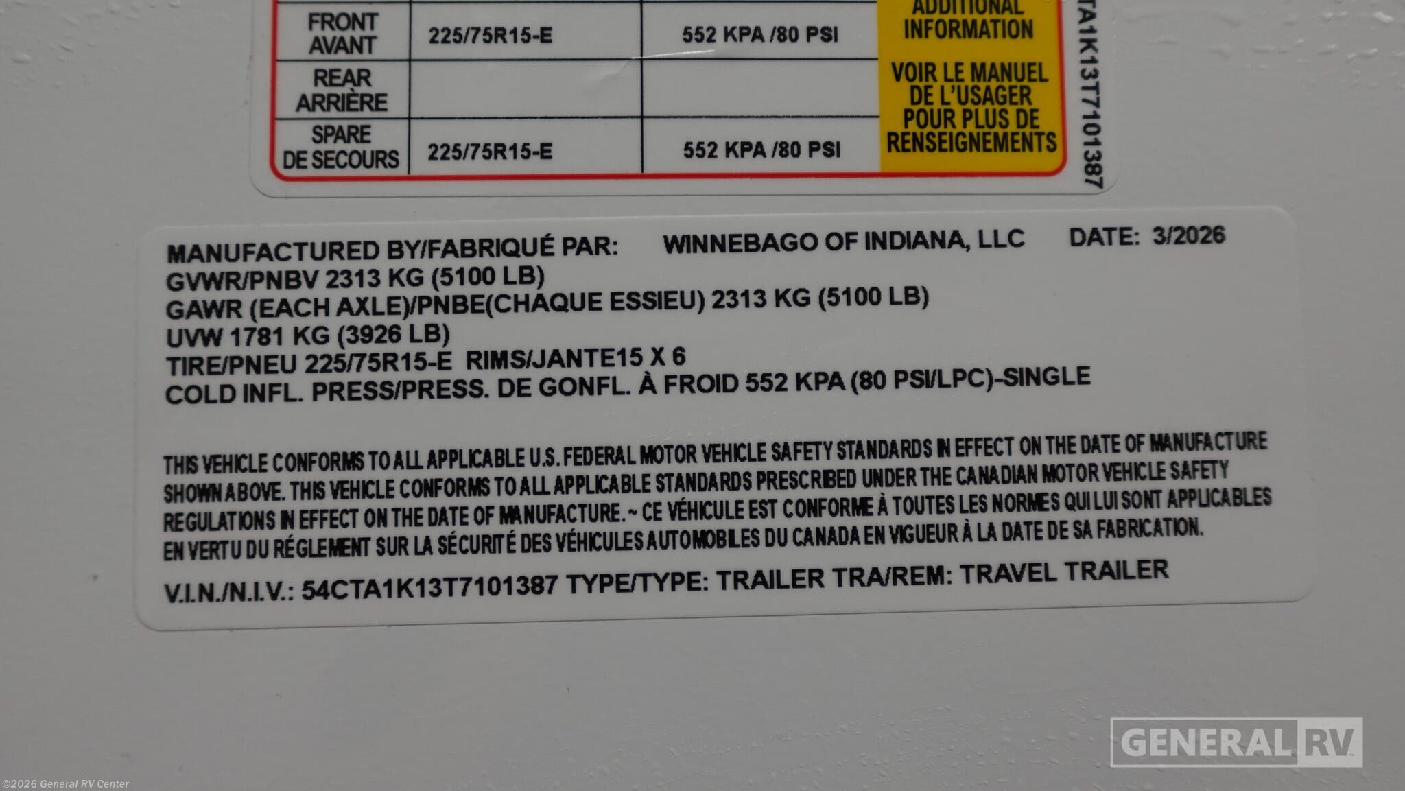 - Type Travel Trailer