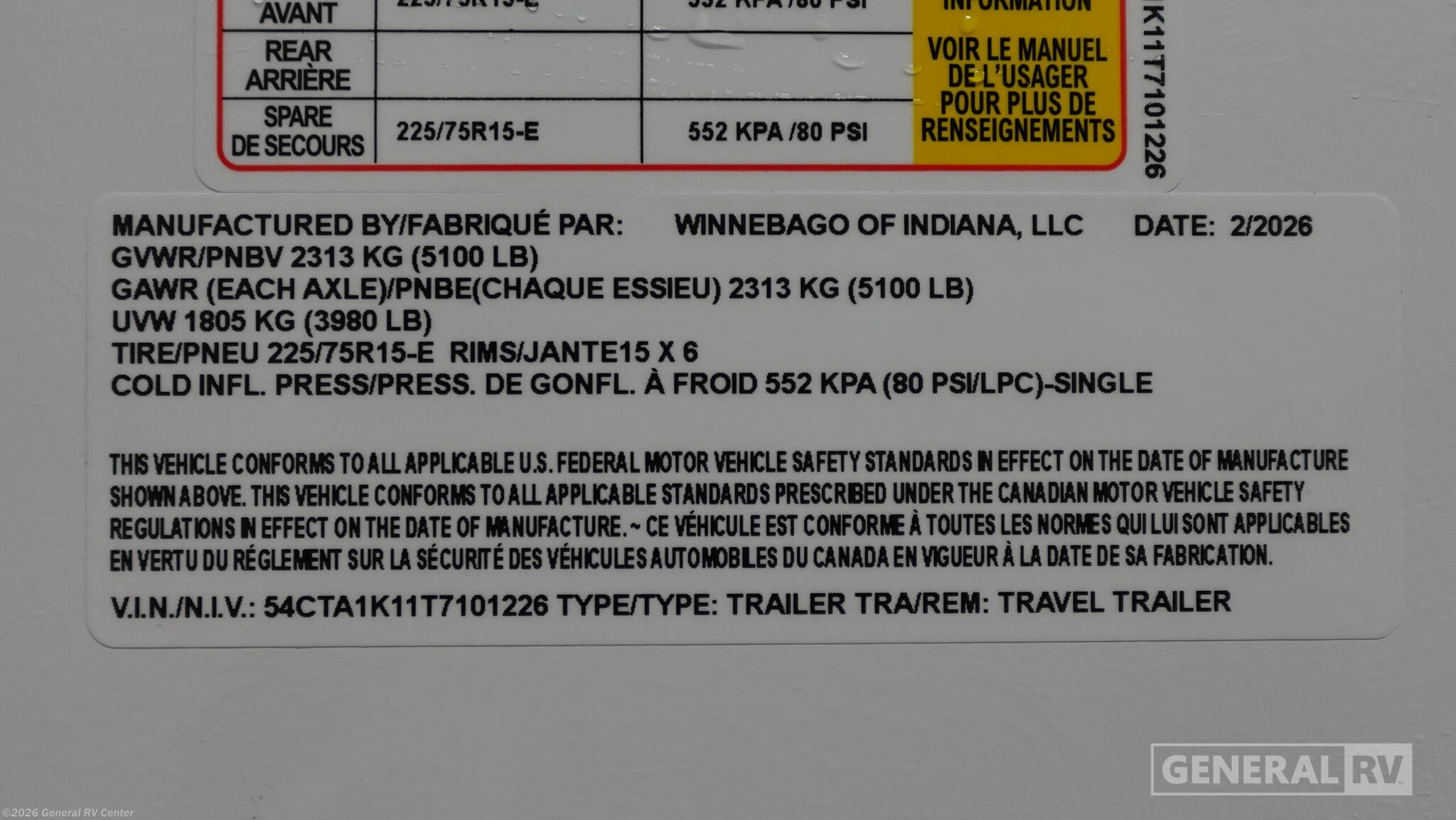 - Type Travel Trailer