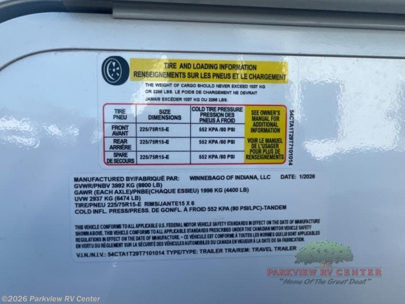 New 2026 Winnebago Thrive 26FKD