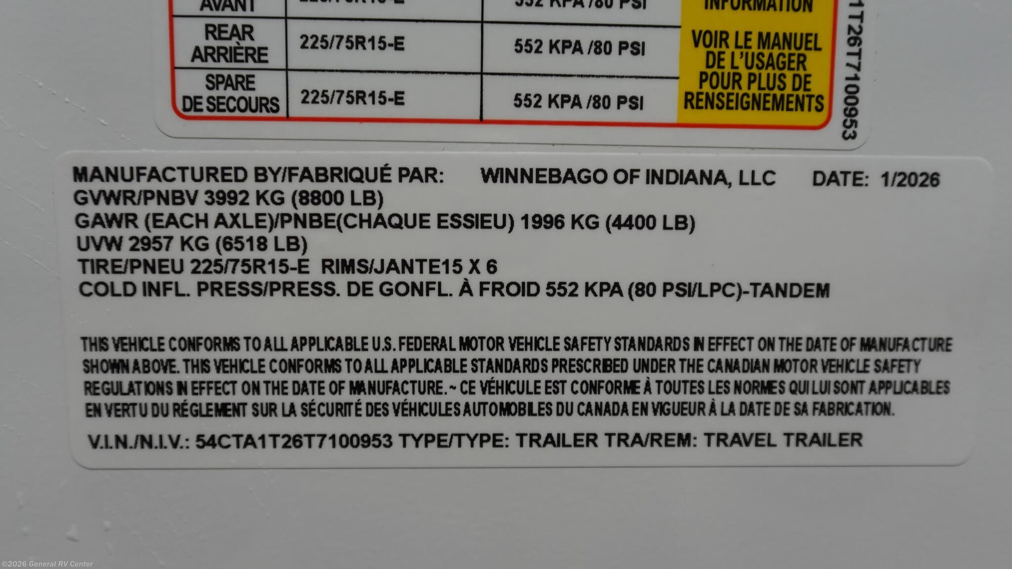 - Type Travel Trailer