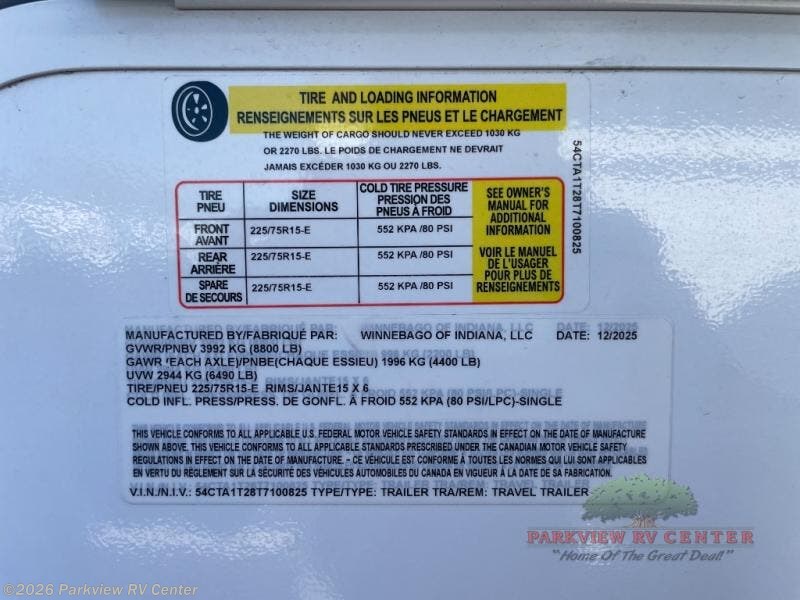 New 2026 Winnebago Thrive 26FKD