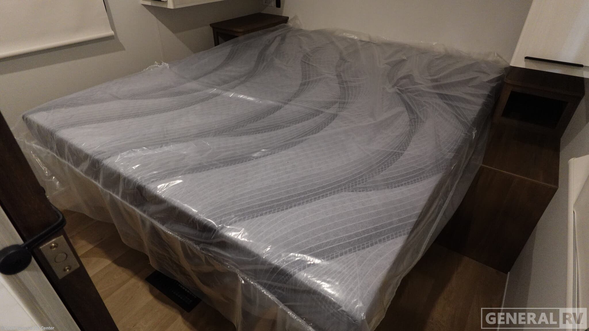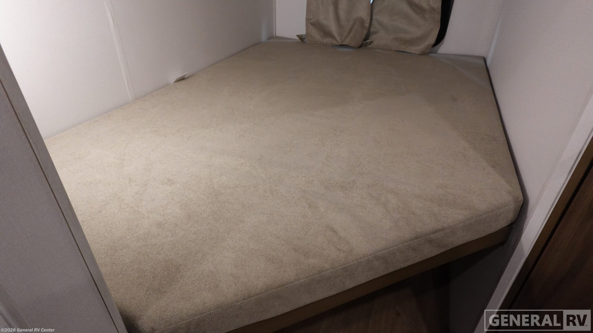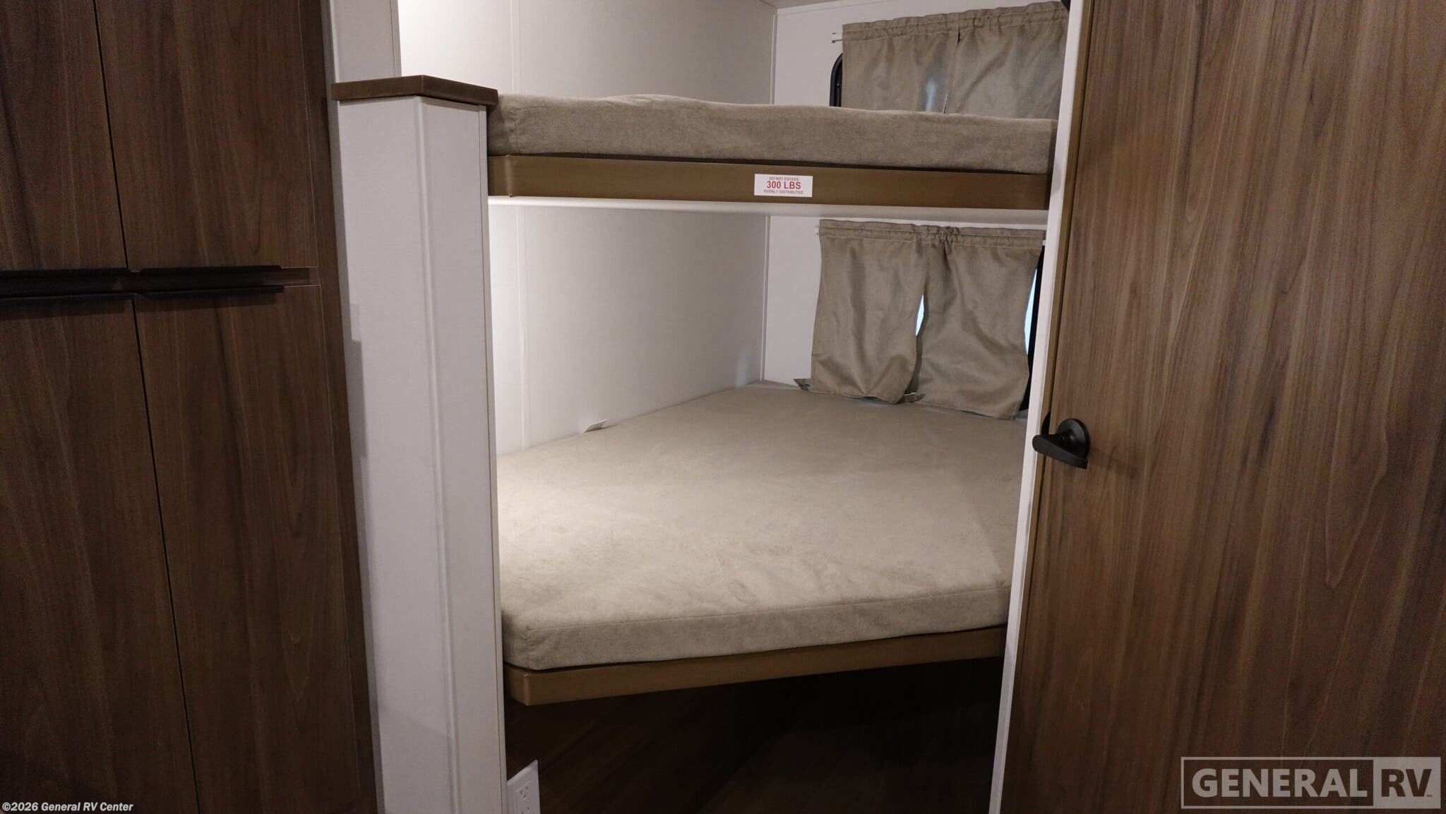 Winnebago Access travel trailer 25BH highlights: Double-Size Bunk Beds Exterior Refrigerator Front Private Bedroom Rear Corner Full Bath Weekend trips to the campground are made easy in this spacious travel trailer for eight! There is a front private bedroom with a space saving sliding door, a 66" x 80" queen bed, and dual wardrobes to keep your things tidy. The bunks in the back will provide compact sleeping space for guests, and there is a tri-fold sofa slide out and a booth dinette in the combined kitchen and living area for even more accommodations. A wardrobe/pantry is found beside the booth dinette to keep snacks stocked, and an optional TV can be added if you want to enjoy movie nights! The chef of your group is sure to appreciate the flip-up counter for more prep space, along with all the appliances needed to create their best meals. With any Winnebago Access travel trailer you will find thoughtful, clean, and contemporary designs filled with premium features that all have come to expect on any Winnebago towable. There are single and tandem axle models available, each with superior storage, durable construction, and spacious interiors. The functional galley kitchen will make time at the campground easier than ever, and the stylish roller shades will provide privacy and shade when you need it!