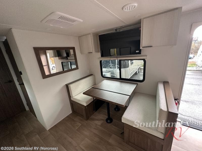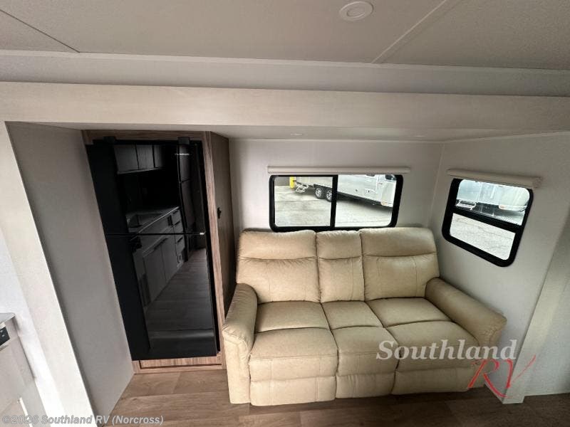You'll love every minute spent in this spacious travel trailer! With dual entry doors, you can enter in through the rear kitchen or the front private bedroom! There are dual beside wardrobes here and a closet so you can keep your space organized, and the full bath is right next to the bedroom for easy nighttime use. Back to the kitchen, you'll find ample counter space to prep meals, a three-burner cooktop, plus a pantry and 10 cu. ft. 12V refrigerator for food storage. Your crew can dine at the booth dinette, then relax on the tri-fold sofa slide after dinner. And both of these pieces of furniture can double as sleeping space for guests!