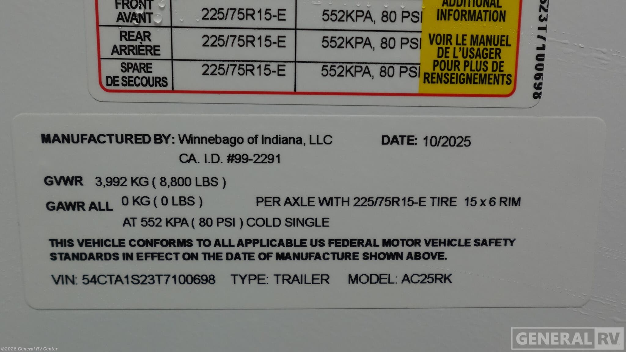 Request More Info on this 2026 Winnebago Access 25RK Offered for sale by General RV Center