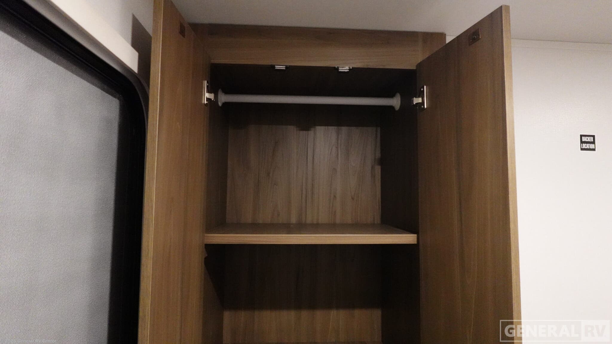 Winnebago Access travel trailer 25RK highlights: Rear Kitchen Booth Dinette 66" x 80" Queen Bed Exterior Baggage Doors You'll love every minute spent in this spacious travel trailer! With dual entry doors, you can enter in through the rear kitchen or the front private bedroom! There are dual beside wardrobes here and a closet so you can keep your space organized, and the full bath is right next to the bedroom for easy nighttime use. Back to the kitchen, you'll find ample counter space to prep meals, a three-burner cooktop, plus a pantry and 10 cu. ft. 12V refrigerator for food storage. Your crew can dine at the booth dinette, then relax on the tri-fold sofa slide after dinner. And both of these pieces of furniture can double as sleeping space for guests! With any Winnebago Access travel trailer you will find thoughtful, clean, and contemporary designs filled with premium features that all have come to expect on any Winnebago towable. There are single and tandem axle models available, each with superior storage, durable construction, and spacious interiors. The functional galley kitchen will make time at the campground easier than ever, and the stylish roller shades will provide privacy and shade when you need it!