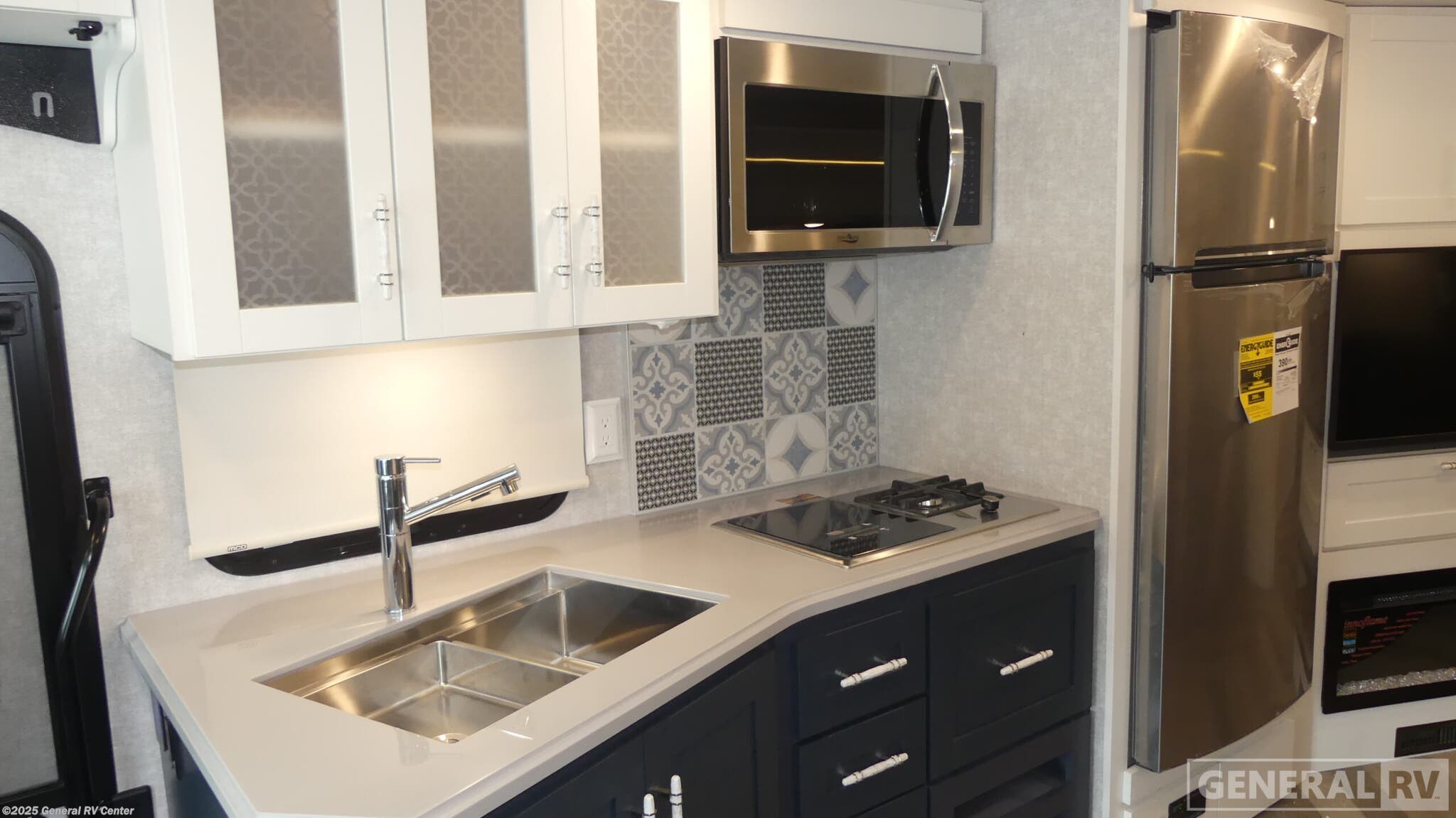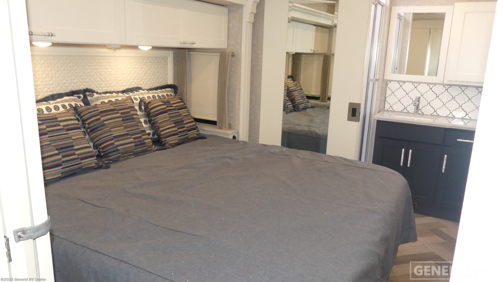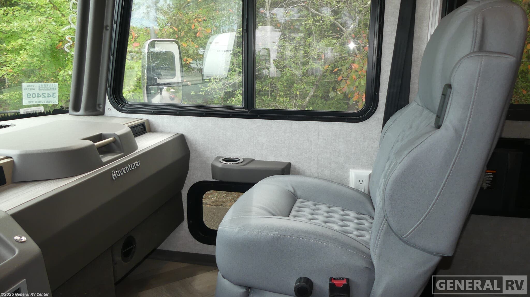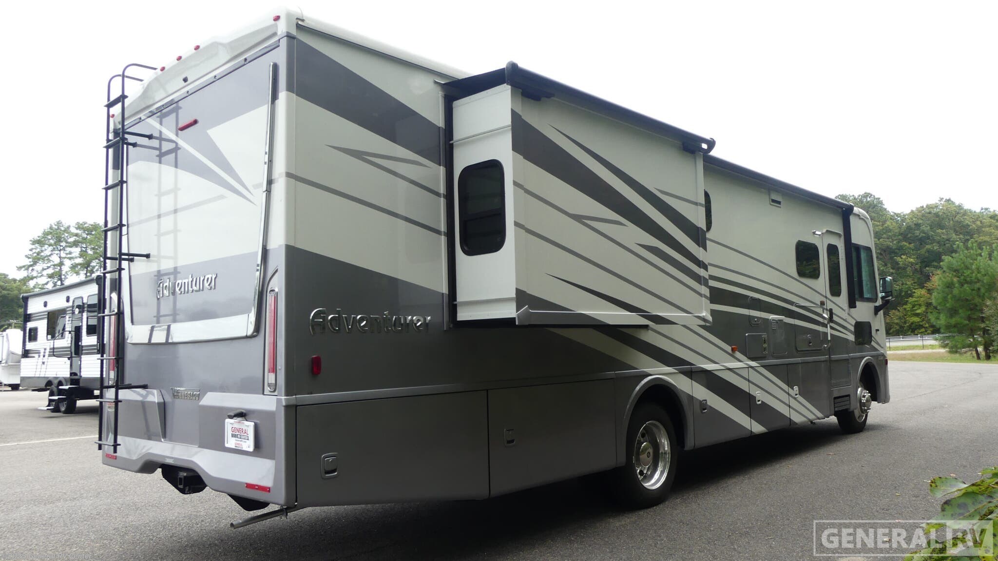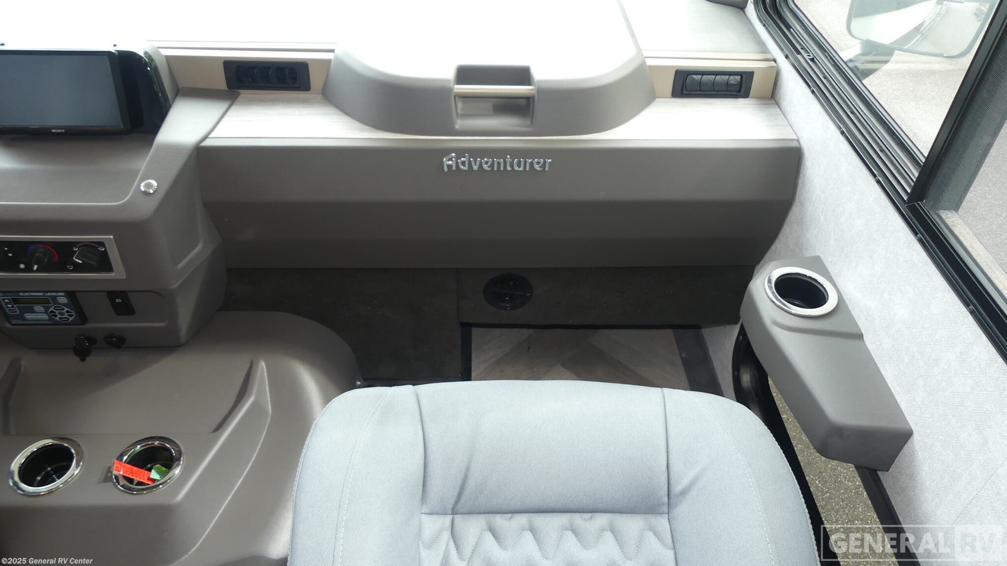 The 2026 Winnebago Adventurer 35F is your ticket to luxurious road adventures, blending comfort and functionality in a sleek package. As you explore its spacious interior, you'll find a thoughtfully designed layout featuring a front kitchen and a center living area, perfect for entertaining or relaxing with family and friends. The extendable sectional sofa and dinette provide versatile seating options, while the residential refrigerator and convection cooking make meal preparation a breeze. The powered retractable awning invites you to enjoy the outdoors, offering shade and comfort wherever you park. Retreat to the center bedroom, where a plush king bed awaits, promising restful nights after a day of exploration. The bathroom, conveniently located at the rear, features a stylish shower with plastic and glass elements. With ample storage, including a wardrobe and storage cabinets, you’ll have plenty of room for all your travel essentials. Built on a robust Ford F53 chassis and powered by a 335-horsepower engine, the Adventurer 35F ensures a smooth and powerful ride. For more details and to experience this RV in person, visit your nearest General RV Dealership.