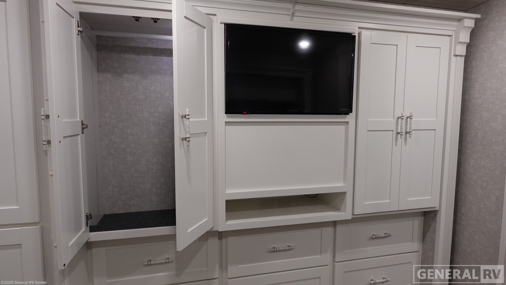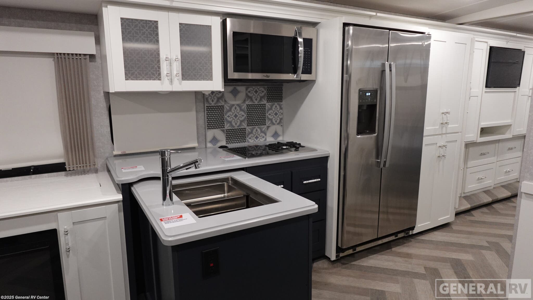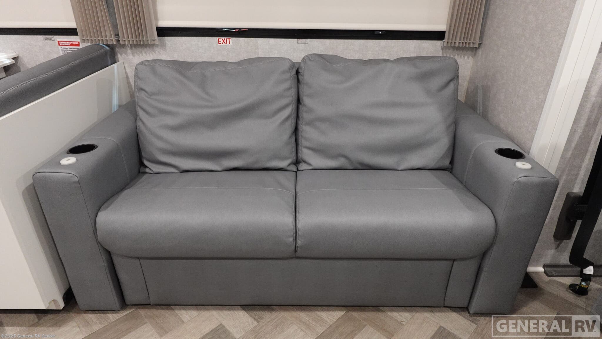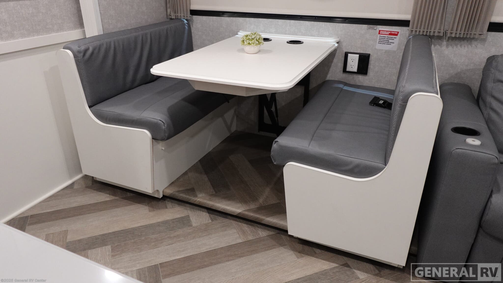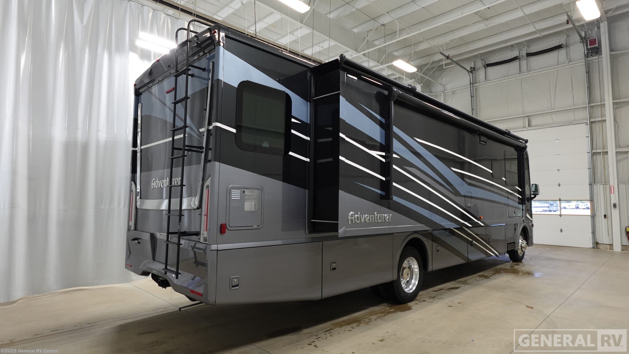 Step into the world of luxury and adventure with the 2026 Winnebago Adventurer 36Z. This motorhome is designed to be your home away from home, offering an impressive blend of comfort and functionality. At 37.25 feet long, this spacious RV features three slides that expand your living area, making it perfect for families or groups up to eight. The front living area boasts a TrueComfort+ sofa and a cozy entertainment center, ideal for relaxing after a day of exploration. The center kitchen, equipped with a full-size residential refrigerator and convection cooking, ensures you can whip up your favorite meals with ease. The rear of the Adventurer 36Z is a sanctuary of relaxation with a king-sized bed, ample wardrobe space, and a location ready for an optional washer/dryer, making extended trips a breeze. The thoughtfully designed bathroom, complete with a plastic/glass shower, provides a touch of modern elegance. With a 19 ft. powered retractable awning, you can enjoy the outdoors in comfort, while the Ford F53 chassis and 335 horsepower engine guarantee a smooth ride. For more details or to experience this RV firsthand, visit your nearest General RV Dealership.