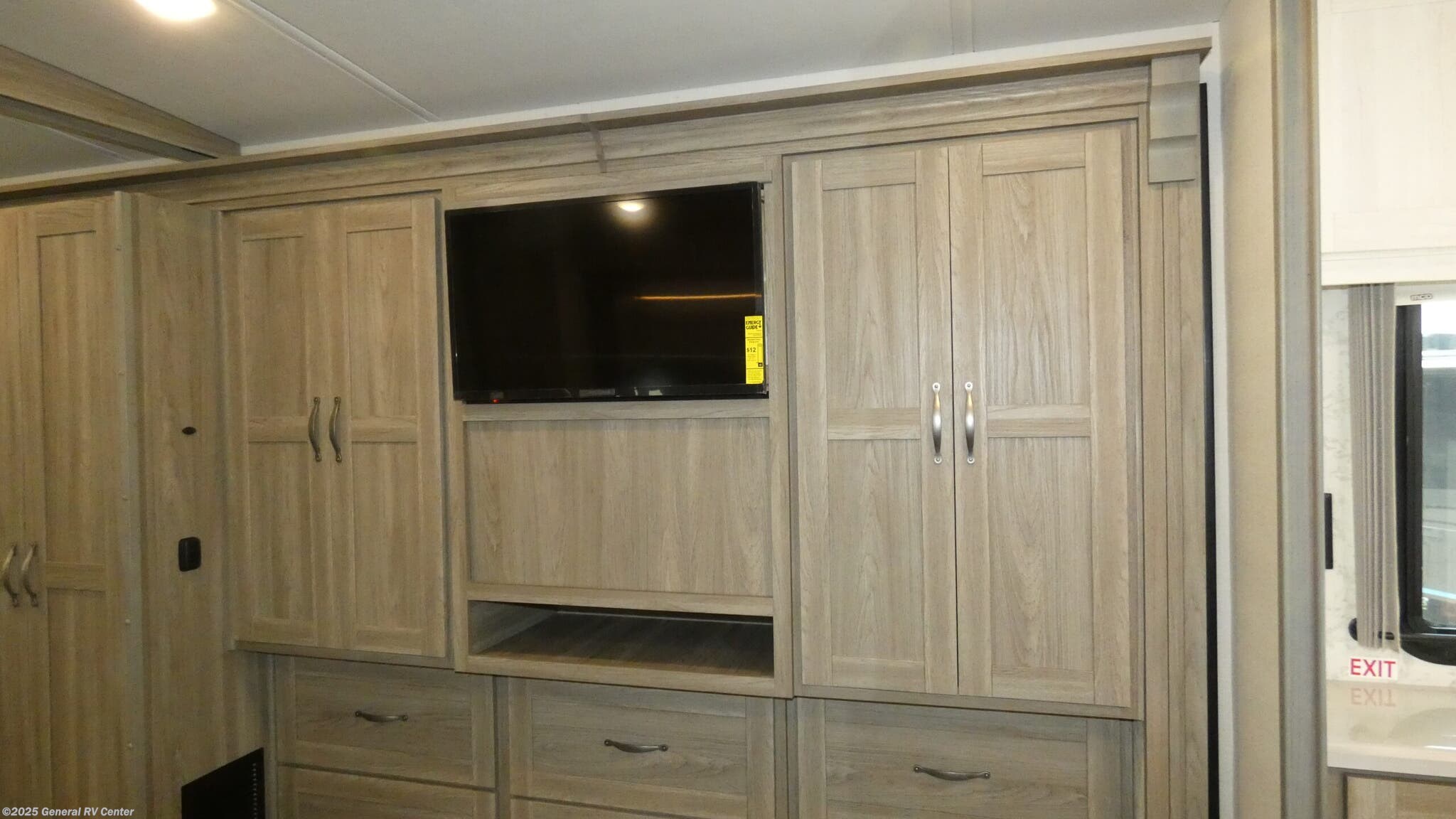 Step into the world of luxury and adventure with the 2026 Winnebago Adventurer 36Z. This motorhome is designed to be your home away from home, offering an impressive blend of comfort and functionality. At 37.25 feet long, this spacious RV features three slides that expand your living area, making it perfect for families or groups up to eight. The front living area boasts a TrueComfort+ sofa and a cozy entertainment center, ideal for relaxing after a day of exploration. The center kitchen, equipped with a full-size residential refrigerator and convection cooking, ensures you can whip up your favorite meals with ease. The rear of the Adventurer 36Z is a sanctuary of relaxation with a king-sized bed, ample wardrobe space, and a location ready for an optional washer/dryer, making extended trips a breeze. The thoughtfully designed bathroom, complete with a plastic/glass shower, provides a touch of modern elegance. With a 19 ft. powered retractable awning, you can enjoy the outdoors in comfort, while the Ford F53 chassis and 335 horsepower engine guarantee a smooth ride. For more details or to experience this RV firsthand, visit your nearest General RV Dealership.