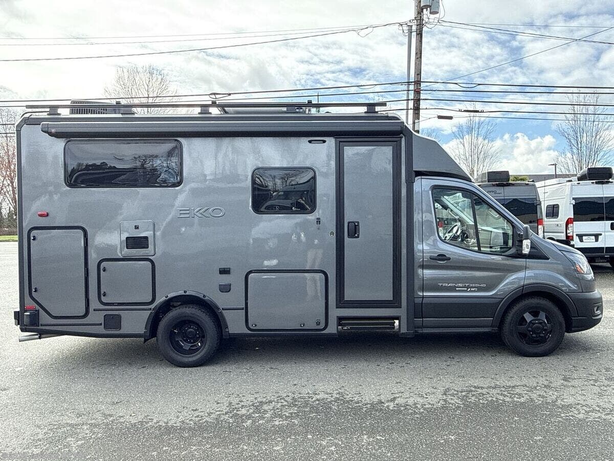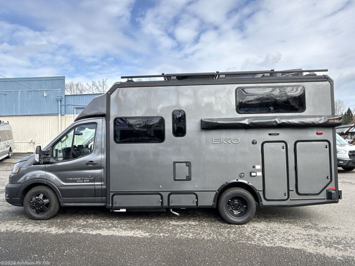Introducing the 2026 Winnebago EKKO – the perfect blend of rugged functionality and modern comfort, designed for the adventurous soul in search of thrilling new landscapes. This brand new Class C RV is built on a sturdy Ford Transit AWD chassis and driven by a reliable Ford 3.5L EcoBoost V6 gas engine, ensuring you can tackle all types of terrain with ease and confidence. Performance Highlights: - 10-Speed Auto SelectShift Overdrive - Dual alternators for enhanced power management - Stylized performance wheels paired with all-season tires, including a spare - HID headlamps, fog lamps, and high mount brake lights for optimal visibility - 5000# hitch with 7-pin connector, perfect for towing Safety Features: - Driver alert, lane-keeping assist, and pre-collision assist systems - Automatic emergency braking and blind spot monitoring - Traffic sign and intersection assist for enhanced navigation - Adaptive cruise control with auto headlamps high beam control - Tire pressure monitoring and rain-sensing wipers for added safety Cabin Comforts: - Aluminum cab steps and intelligent access system for easy entry - Driver and passenger airbags with slide, swivel, recline lumbar seats - Radio rearview monitor system with Apple CarPlay/Android Auto integration - Bluetooth controls and FordPass Connect for seamless connectivity - Electronic temperature control with thermal cab divider wall for optimized climate control Living Space Amenities: - Power patio awning with LED lighting for outdoor enjoyment - Dinette seating for three with an adjustable removable table for meal times - Fully equipped galley with stainless steel sink, refrigerator, and microwave - High-tech entertainment system and USB ports throughout for plenty of entertainment options Sleeping Arrangements: - Room divider curtain for privacy - Twin WinnSleep beds with a flex bed kit for versatile sleeping configurations - Ample storage including wardrobe, drawers, and a heated gear garage Bathroom Features: - Innovative pivoting wall to create a dry or wet bath with a swivel cassette toilet - Molded round sink and 24x30 shower surround with an Oxygenics shower head Mechanical and Outdoor Enhancements: - Comprehensive solar panel setup including two 170W and one 115W panels - 320Ah Lithionics lithium battery with Bluetooth heat package - 2000w pure sine wave inverter and an 80-amp charger - Truma VarioHeat Comfort and Truma AquaGo Comfort Plus for temperature management Designed for all-weather conditions, the Winnebago EKKO is your ultimate road companion, whether you're headed to sun-kissed beaches or snow-frosted mountains. ??? Discover the world with comfort and peace of mind, knowing you're traveling in a vehicle engineered to support every joyous journey.