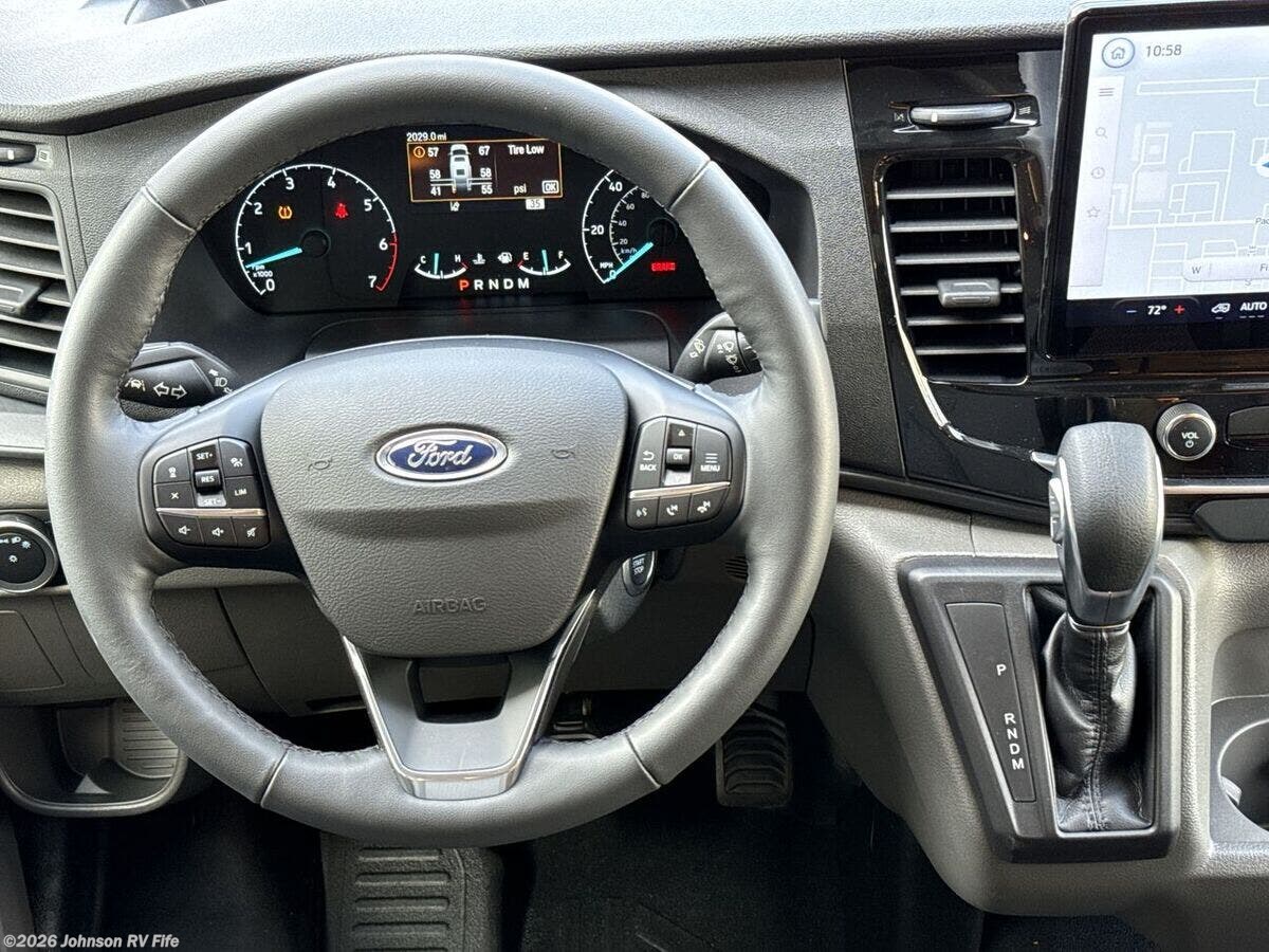 Features Include: Two Alternators, All Seasons Tires, Spare Tire, HID Headlamps, Fog Lamps, Mud Flaps, Driver Alert, Lane-Keeping Assist, Pre-Collision Assist, Traffic Sign Assist, Intersection Assist, Aluminum Cab Steps, Slide, Swivel, Recline Lumbar Seats, Power Windows, Apple CarPlay, Android Auto, Voice Recognition, Bluetooth Contols, FordPass Connect, LED Porch Light, Interior Switch, Entry Assist Bar, LED Ceiling Lighting, Accent Lighting, Vinyl Flooring, Acrylic with Screen, Cassette Shade, Deluxe Power Vent, Remote Dining, Pantry, Laminate Countertops, Stainless Steel Sink, Sink Cover, Systems Center, Entertainment System, USB Ports Sleeping, Room Divider Curtain, WinnSleep Twin Beds, Flex Bed Kit, Reading Lights, 100v 12v USB Outlets, Wardrobe, Storage Drawers, Metal Clothes Rod, Medicine Cabinet, Water Pump Switch, Molded Round Sink, Shower Curtain, Battery Heat Package, Bluetooth, 80-Amp Charger, 30-Amp Service Cord, GFCI Circuit, 2800w Gas Generator, 13.5k AC, On Demand Water Pump, Shower Drain Pump, All Weather Prepped, Roof Access Ladder