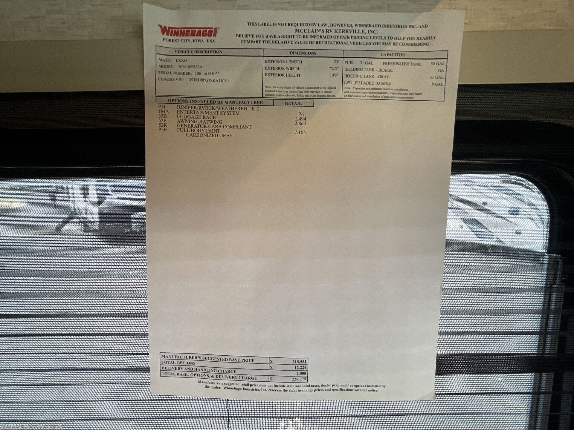 Request More Info on this 2026 Winnebago Ekko 22A Offered for sale by McClains RV
