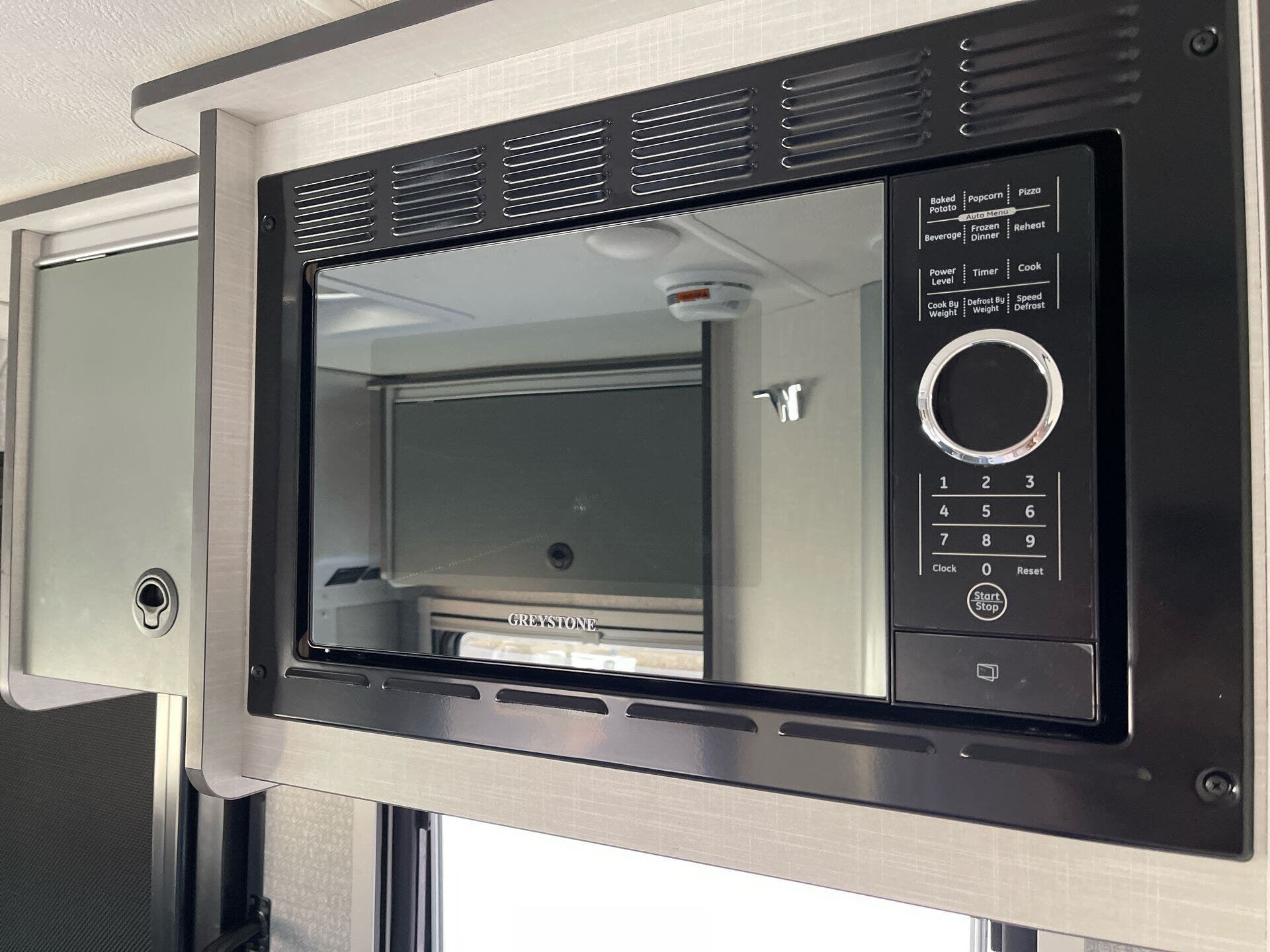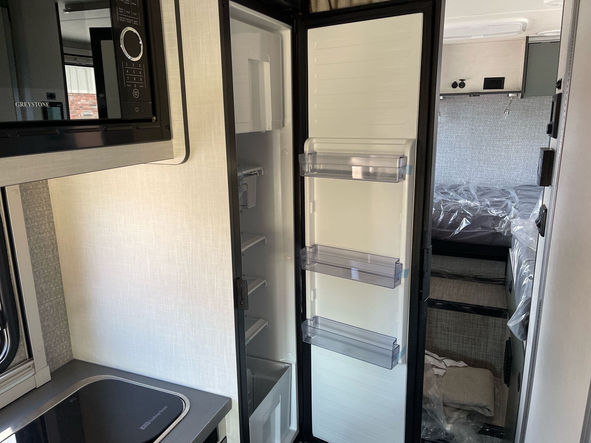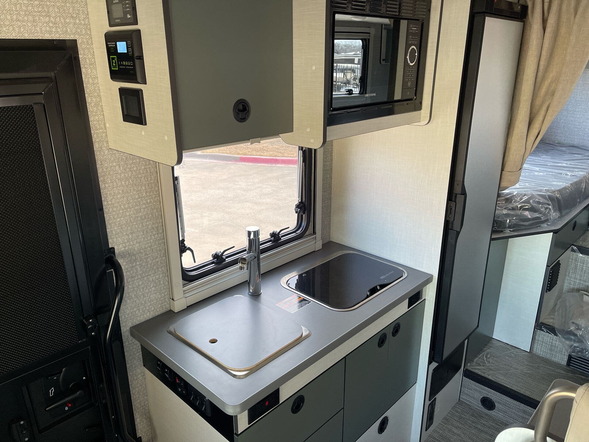 The Ekko stands out with a thoughtful interior, modern amenities, and dependable power systems designed for on-the-road living. This motorhome includes essential cooking, cleaning, and entertainment amenities to elevate any trip. It features robust water and power options, including a 50-gallon fresh water tank, 51 gallons of grey water, and 5 gallons of black water capacity, plus a 13,500 BTU air conditioner to keep you comfortable in varying climates. With 928 miles of potential exploration already on the odometer and a GVWR of 11,000 pounds, the Ekko 22A is all about confident travel and home-like comfort on wheels.