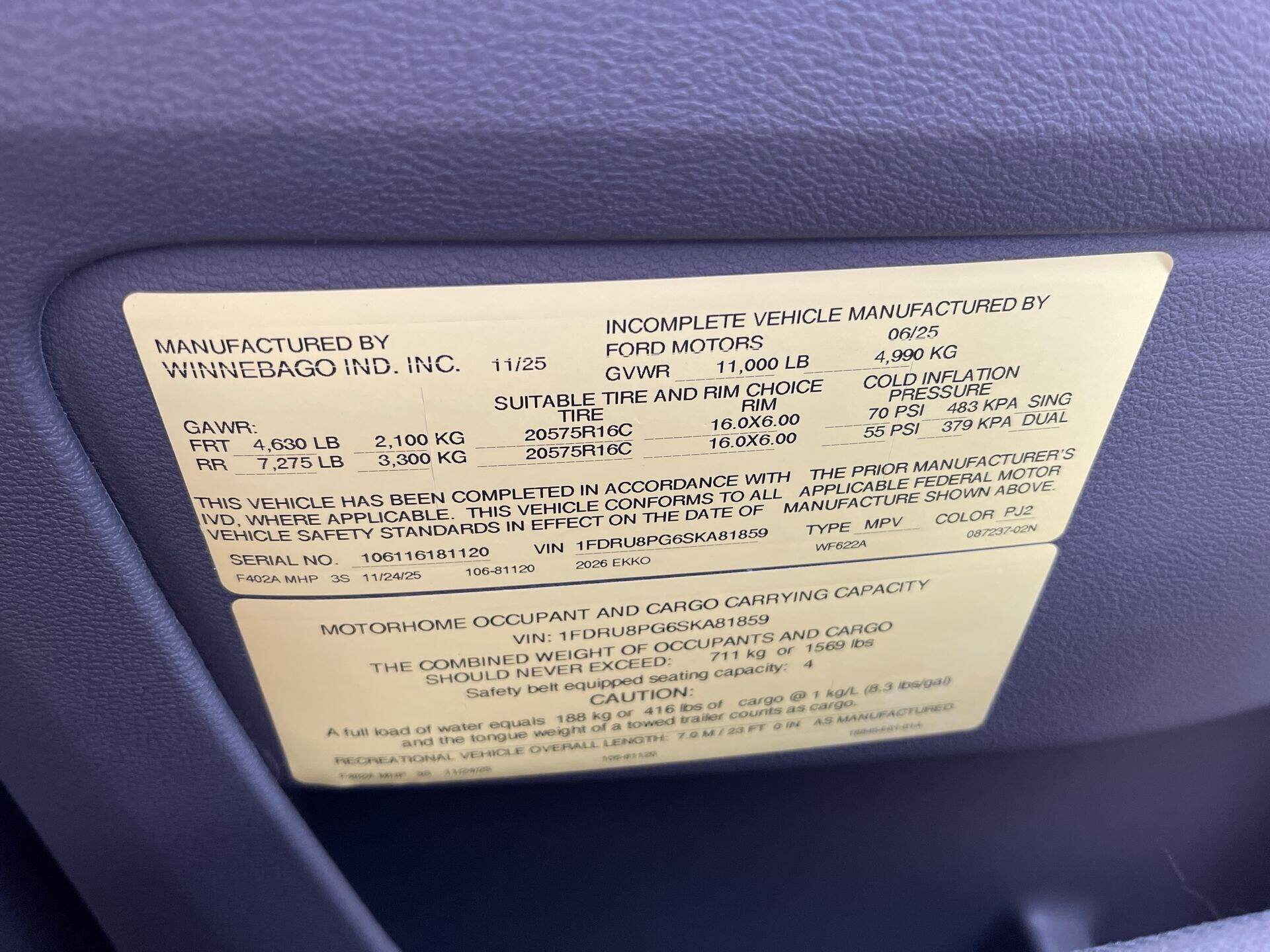- Brand/Model: Winnebago Ekko — Class C motorhome