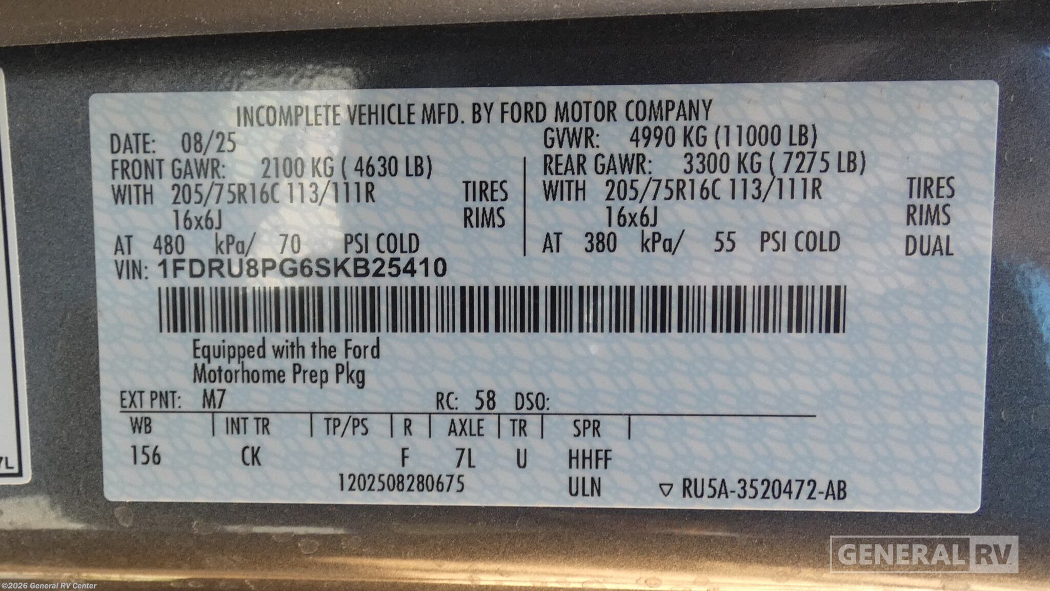 - VIN1FDRU8PG6SKB25410