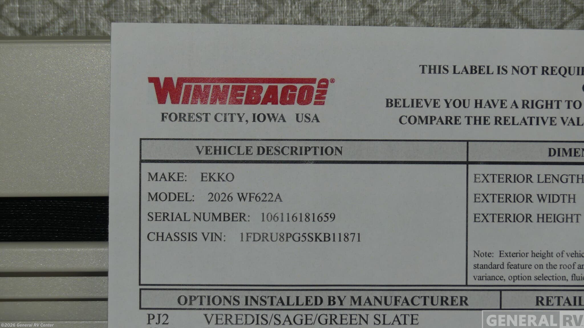 Request More Info on this 2026 Winnebago Ekko 22A Offered for sale by General RV Center