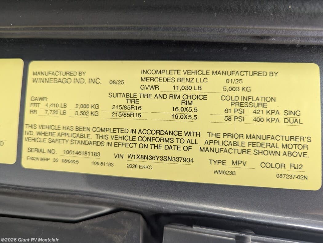Unleash your wanderlust with the 2026 Winnebago Ekko Sprinter 23B, a versatile Class C diesel motorhome built for off-grid adventures. Available at Giant RV, this Ekko Sprinter 23B is crafted on an AWD Mercedes-Benz Sprinter chassis with a 2.0L twin-turbo diesel engine, offering enhanced ground clearance and all-terrain tires for rugged terrains. With a multifunctional lounge and all-season insulation, it’s ideal for extended RV camping in any environment.
