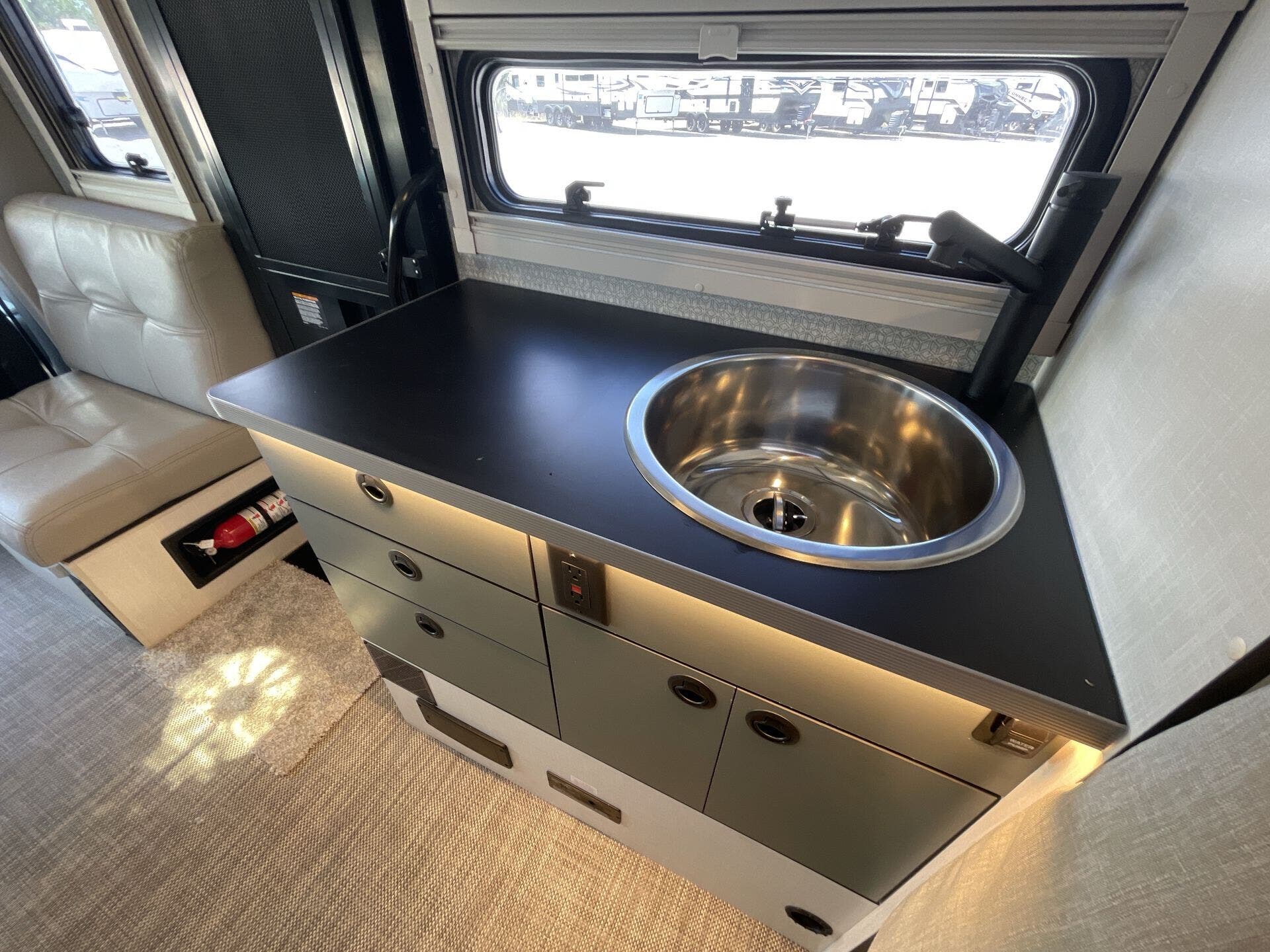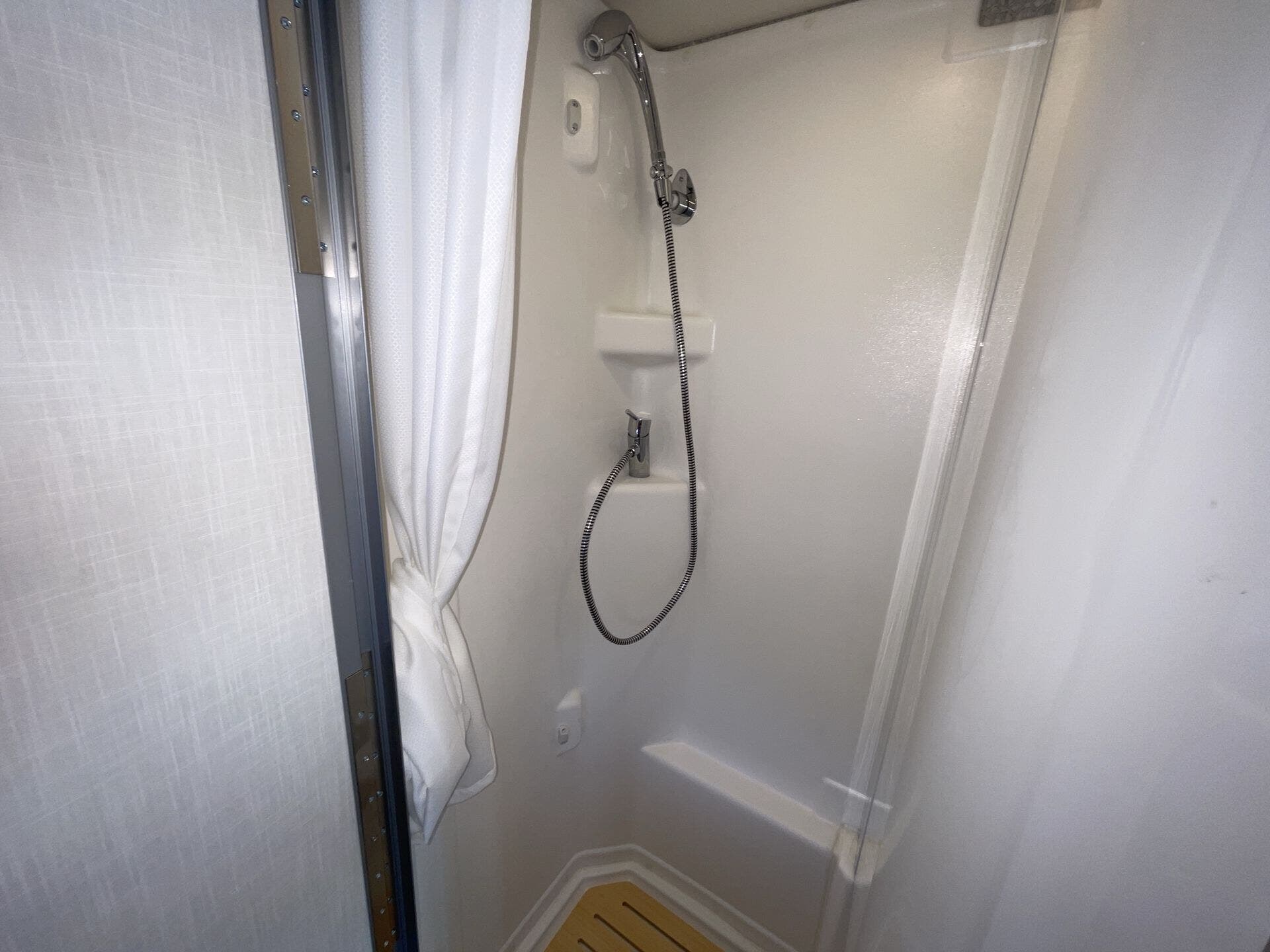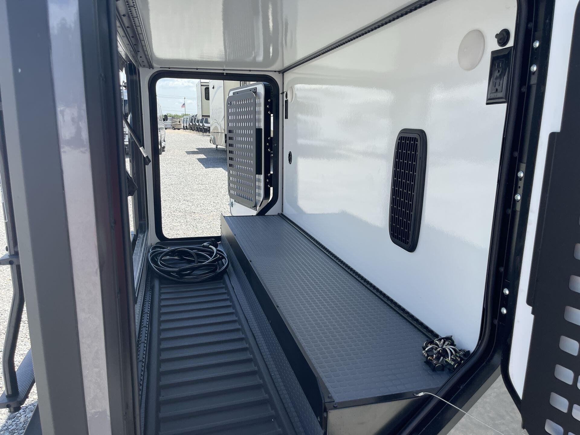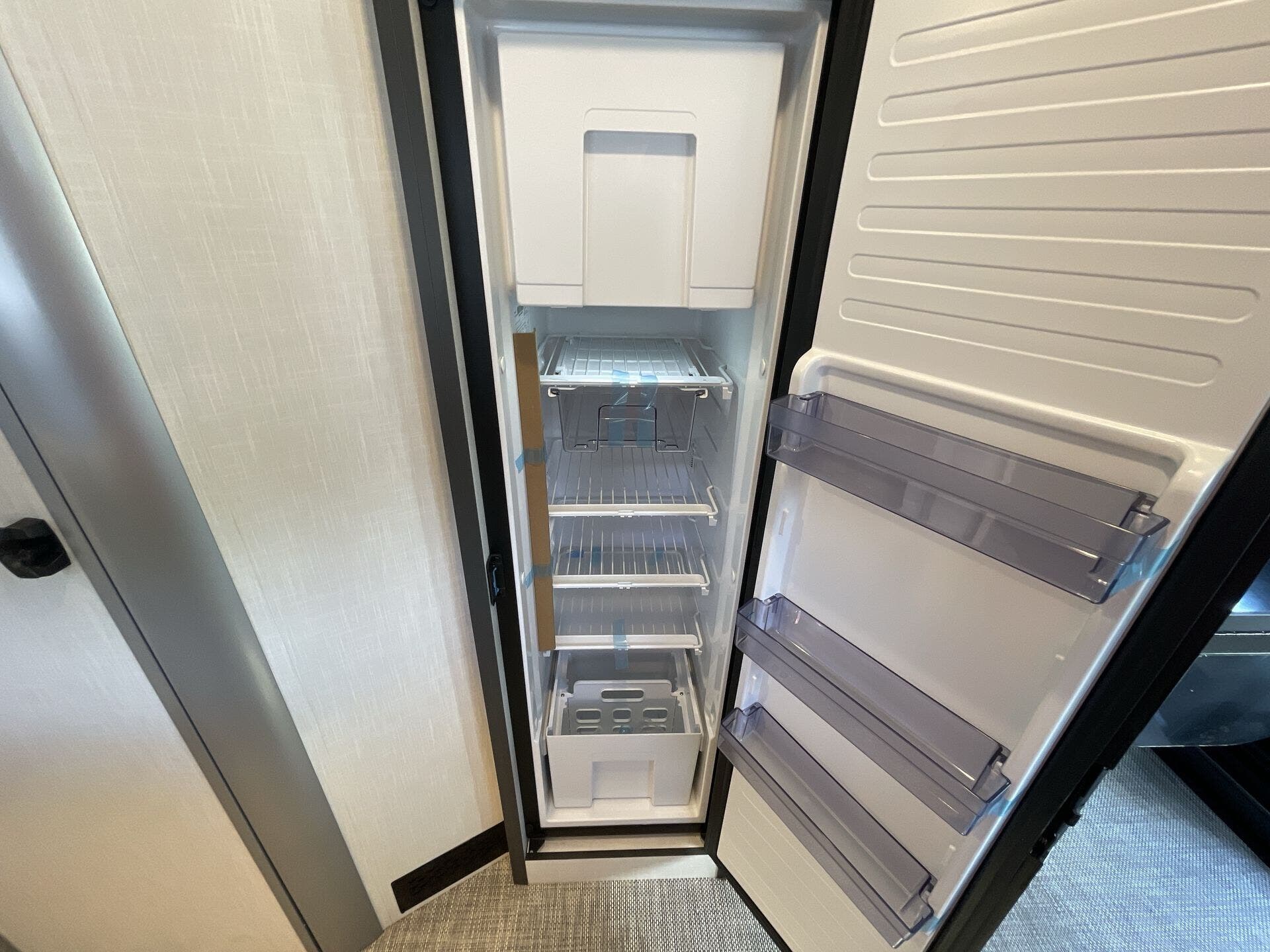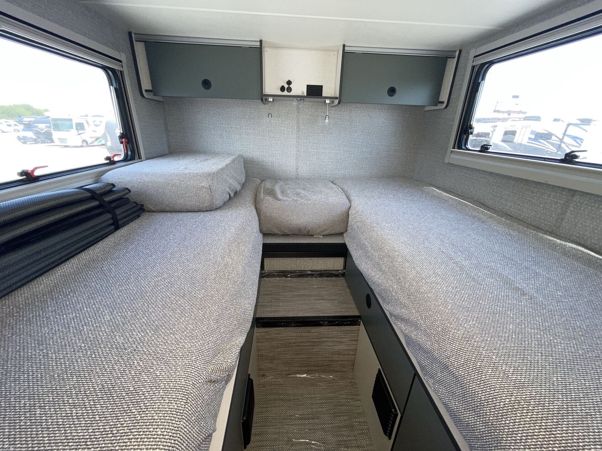Step inside and you’ll find a smartly designed interior that makes the most of every inch. The contemporary living space features twin beds that easily convert into a spacious king, a fully equipped galley kitchen with modern appliances, and a wet bath that doubles as a gear-drying area — perfect for outdoor enthusiasts. High-quality materials, premium finishes, and clever storage solutions make this coach feel both durable and refined, ready for everything from weekend getaways to extended journeys.