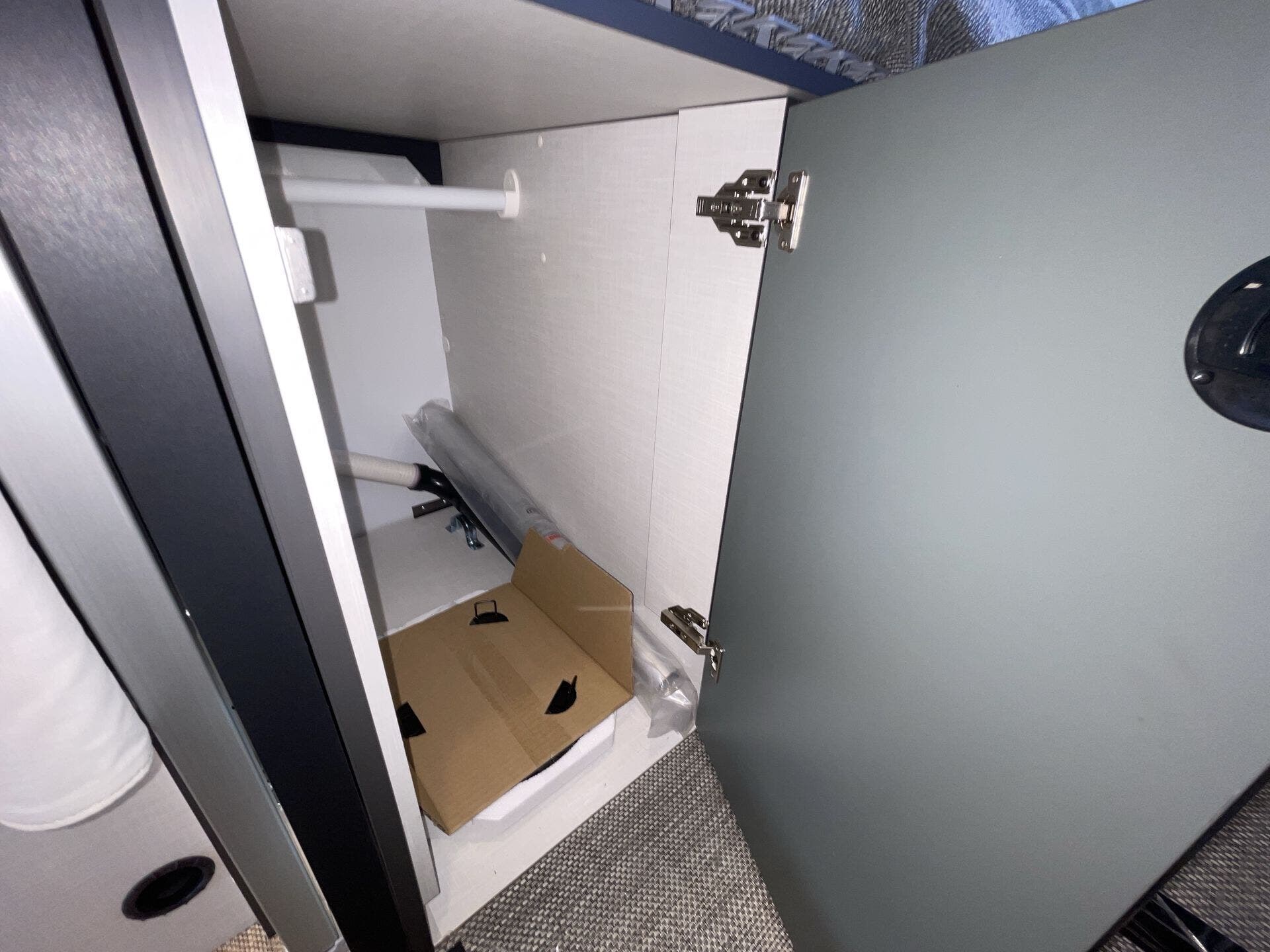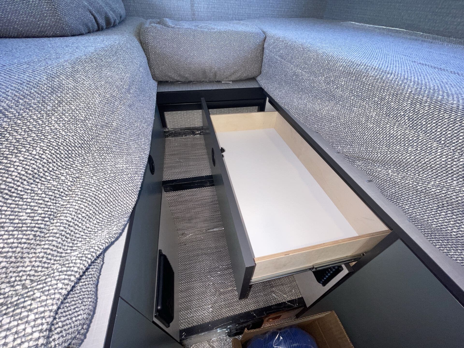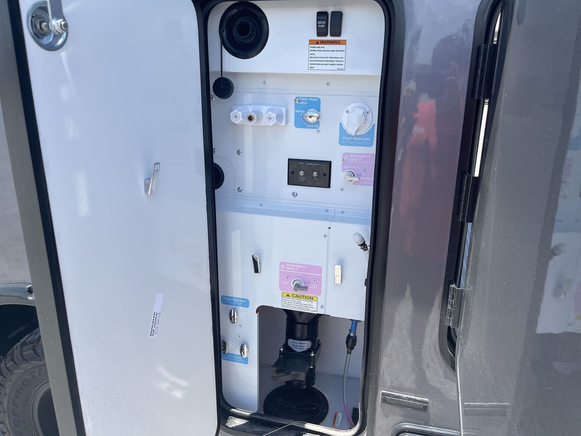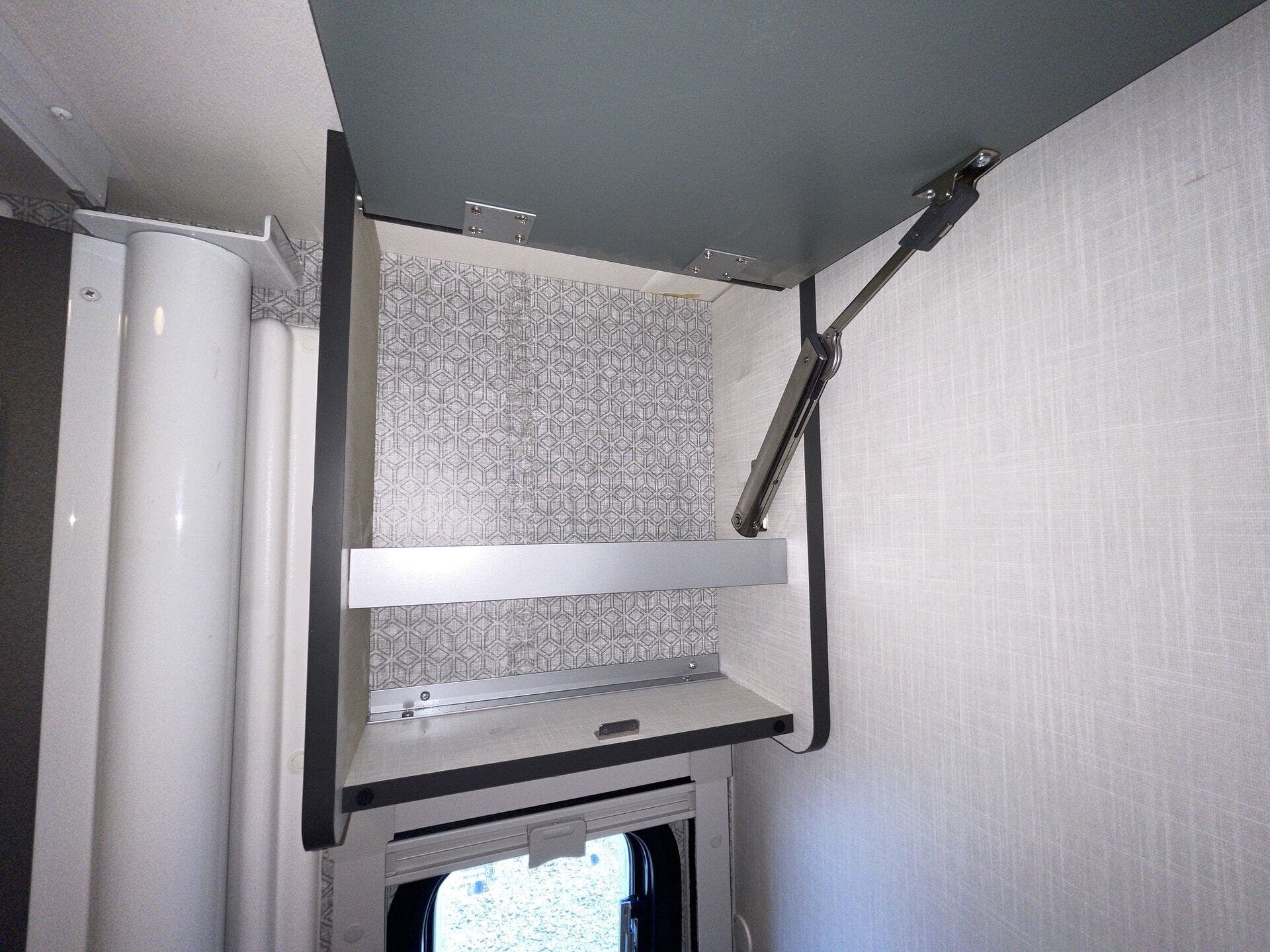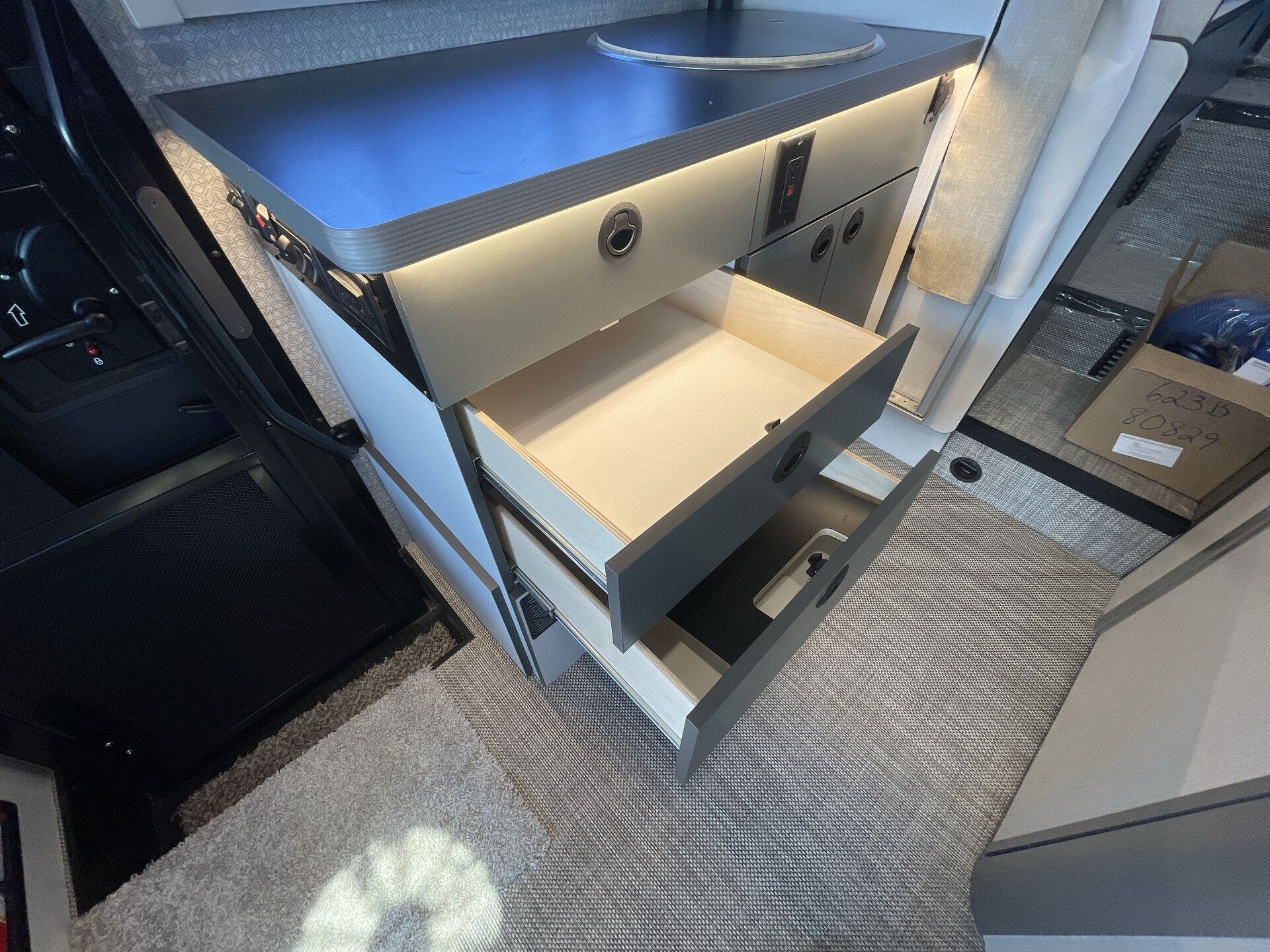 Step inside and you’ll find a smartly designed interior that makes the most of every inch. The contemporary living space features twin beds that easily convert into a spacious king, a fully equipped galley kitchen with modern appliances, and a wet bath that doubles as a gear-drying area — perfect for outdoor enthusiasts. High-quality materials, premium finishes, and clever storage solutions make this coach feel both durable and refined, ready for everything from weekend getaways to extended journeys.