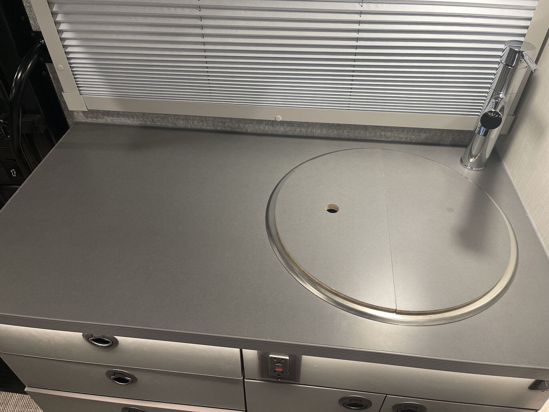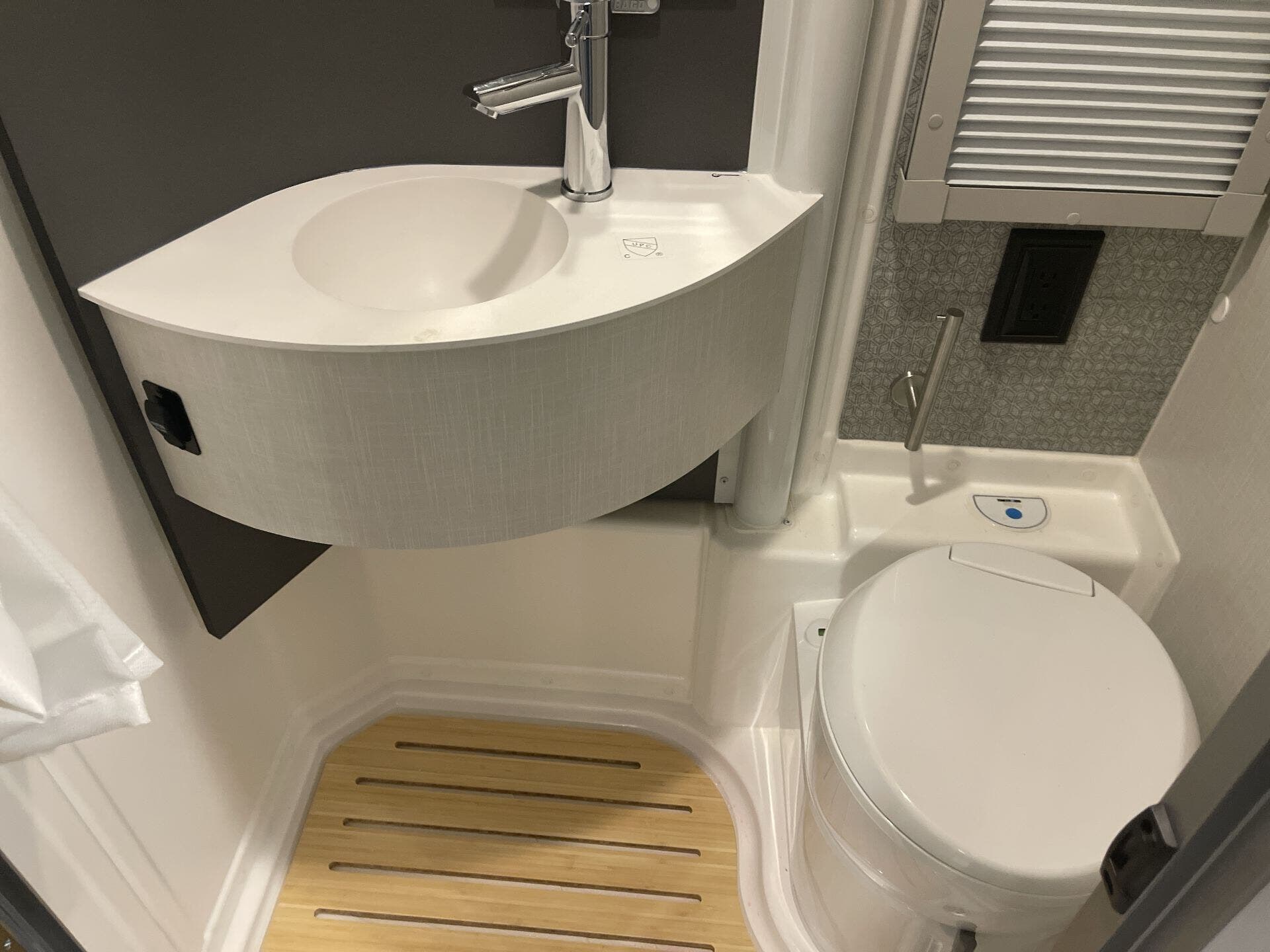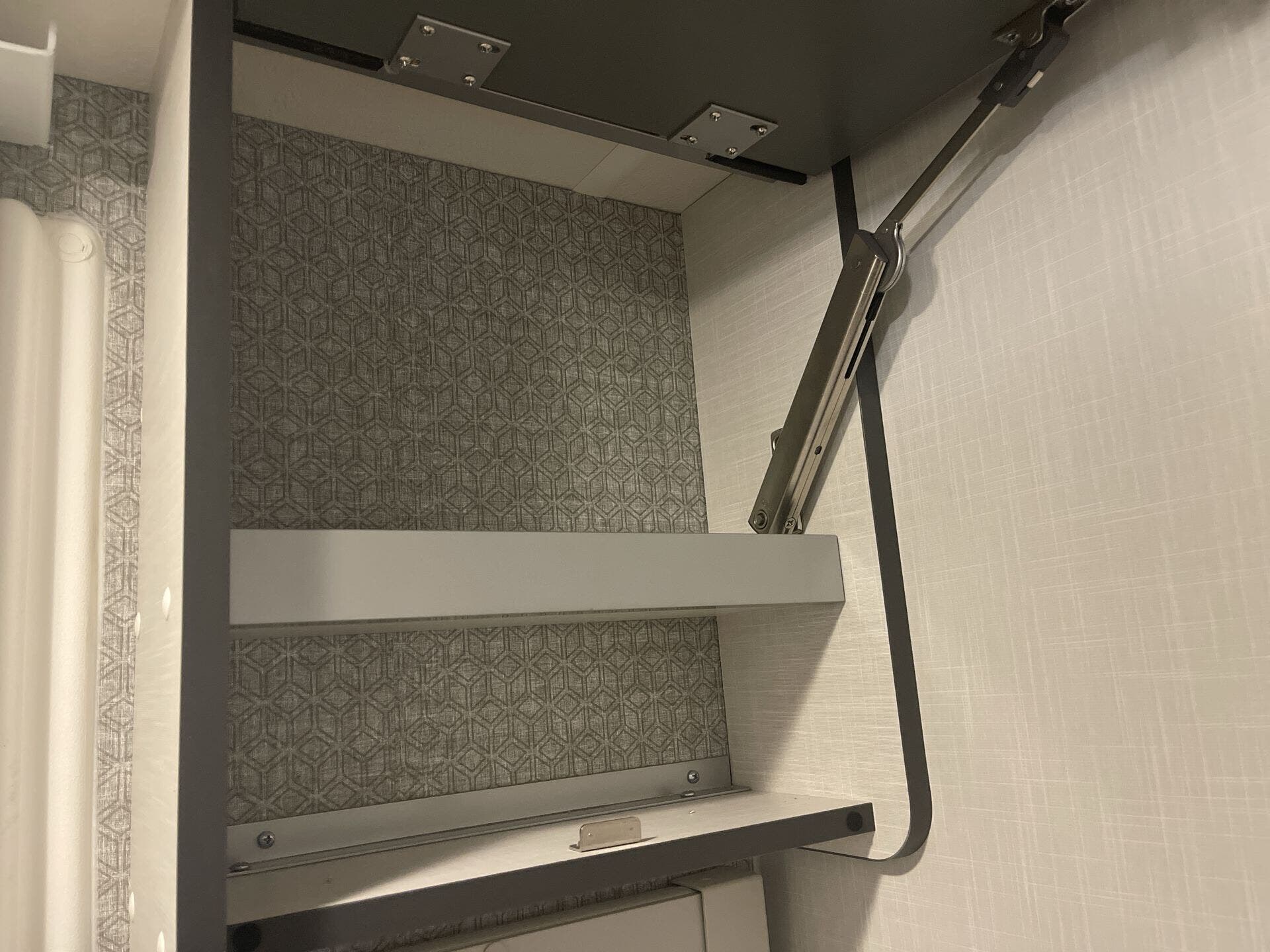 Day/Night Shades, Kitchen Sink, Medicine Cabinet, Overhead Cabinetry, Removable Table, Roof Vents, Shower, Solid Surface Countertops, Toilet, Wardrobe(s)