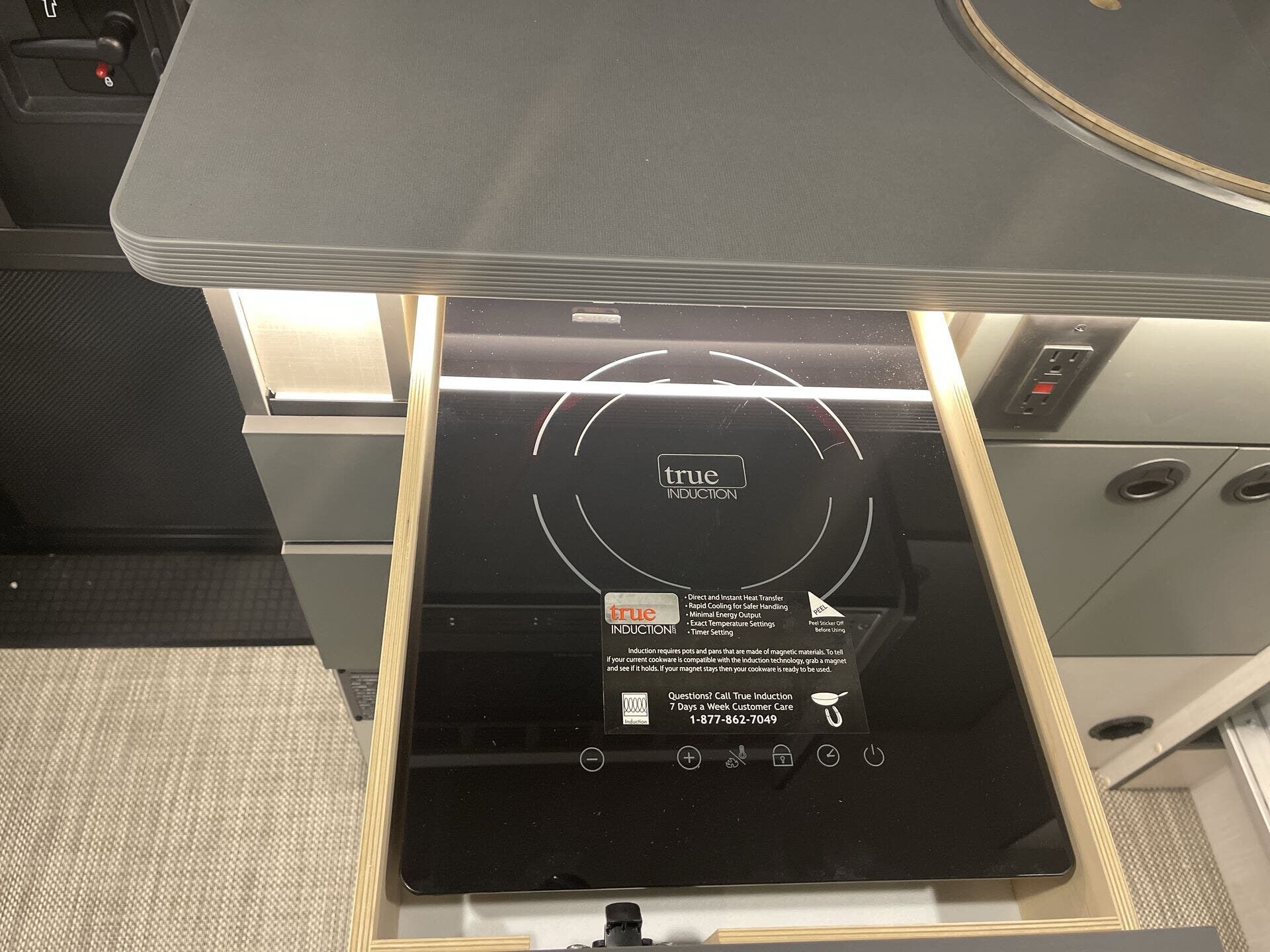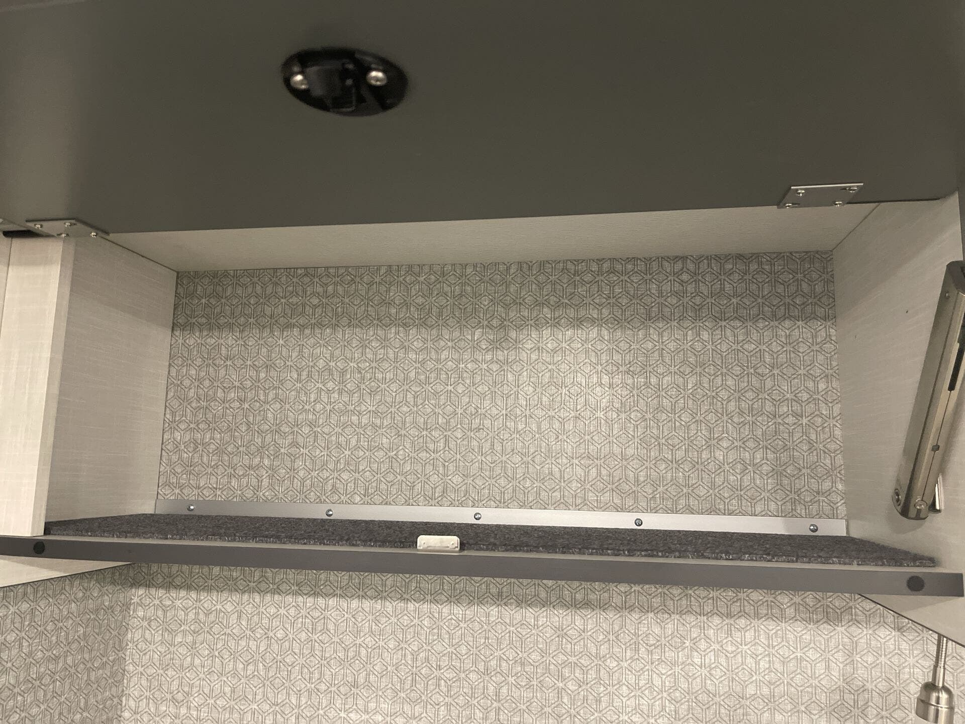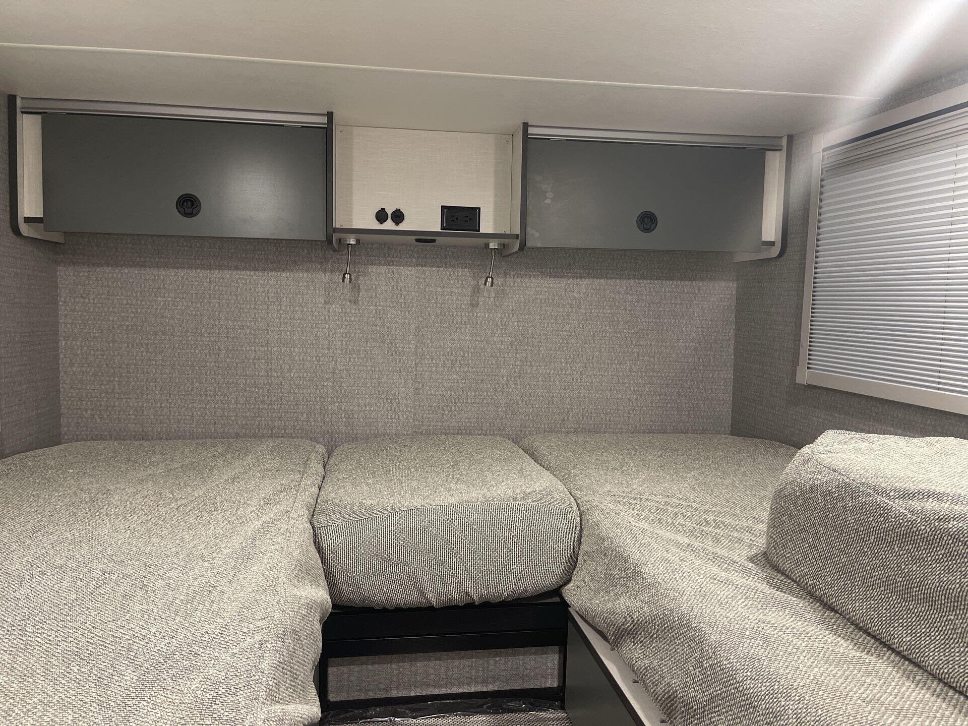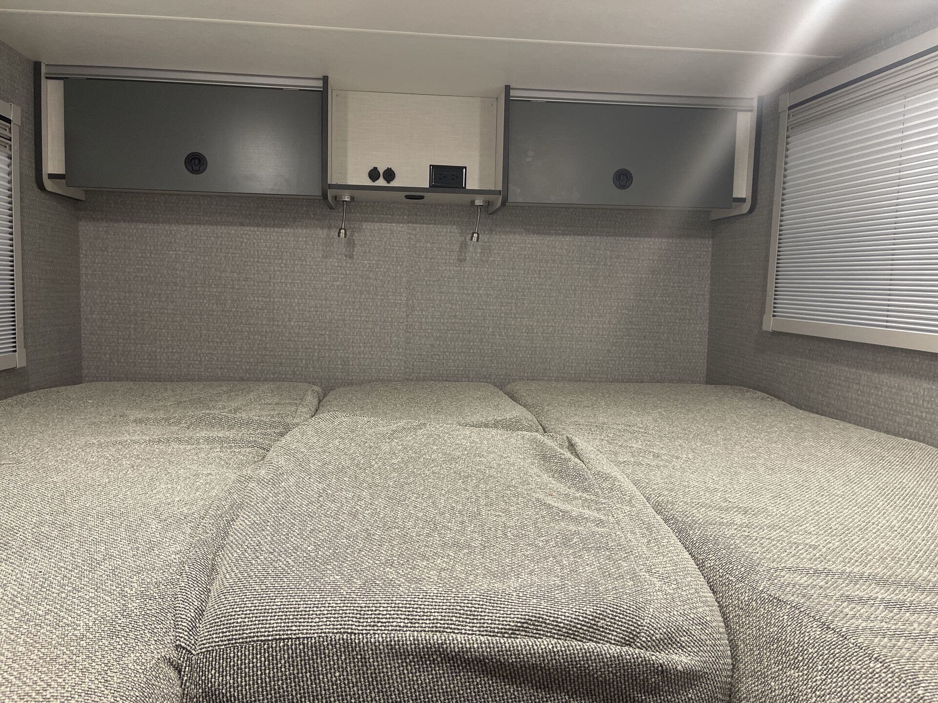 - Interior: Solid Surface Countertops, Kitchen Sink, Stove Top Burner, Microwave, Refrigerator, Water Heater, Day/Night Shades, Overhead Cabinetry, Removable Table, Shower, Toilet, Wardrobe(s)