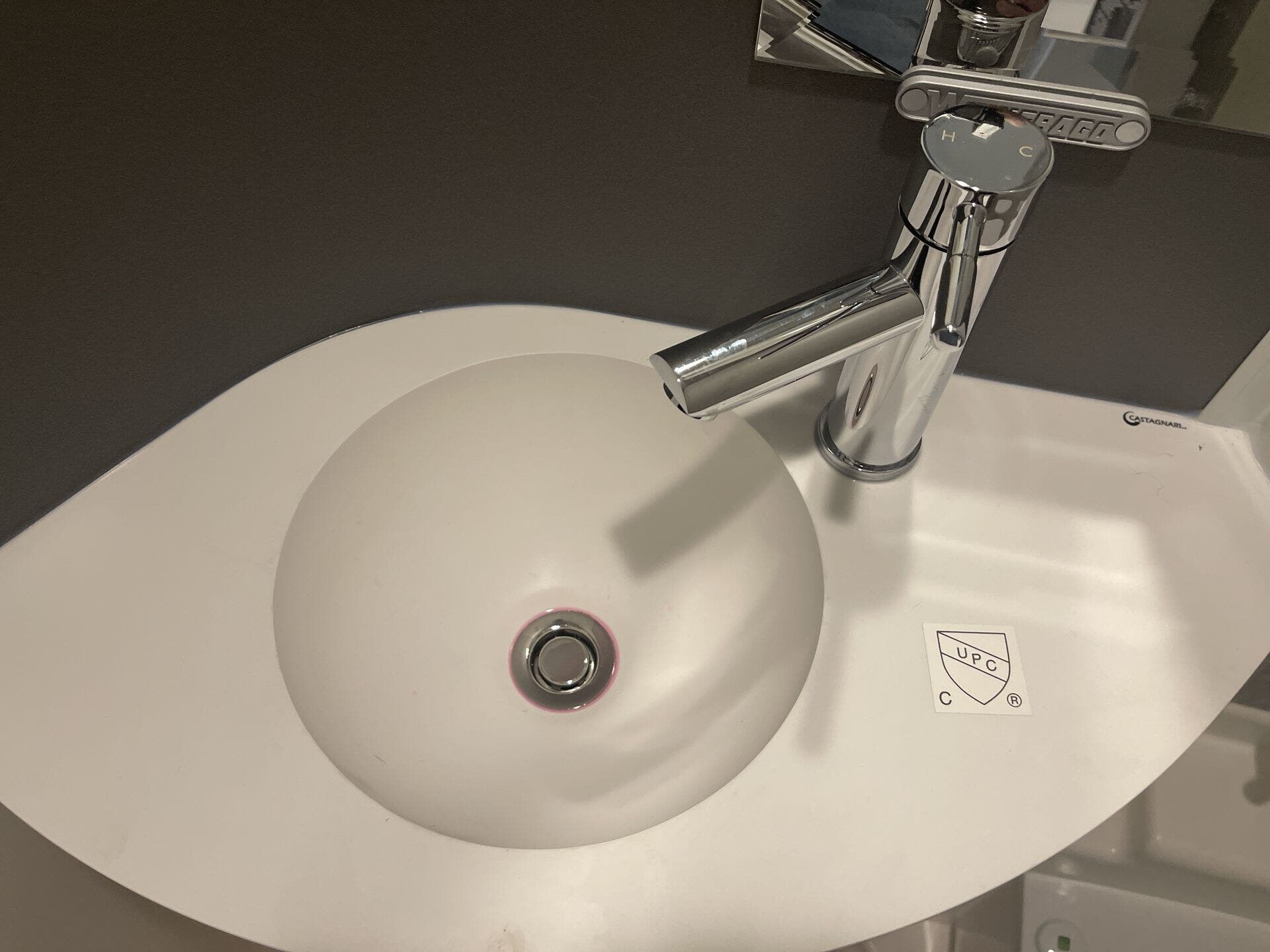 - Shower and toilet with solid surface countertops throughout