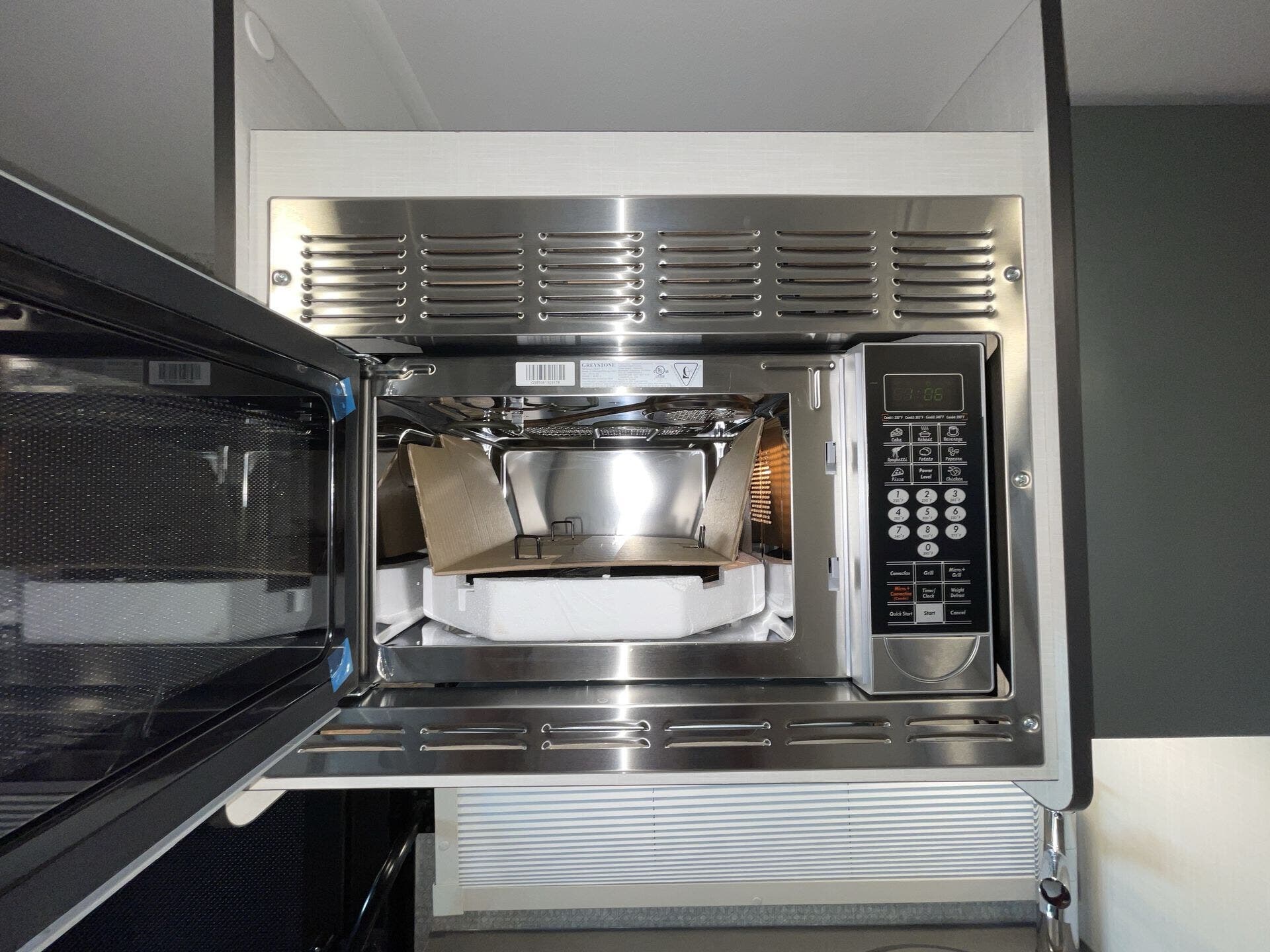 - Kitchen includes Microwave, Stove Top Burner, and Refrigerator