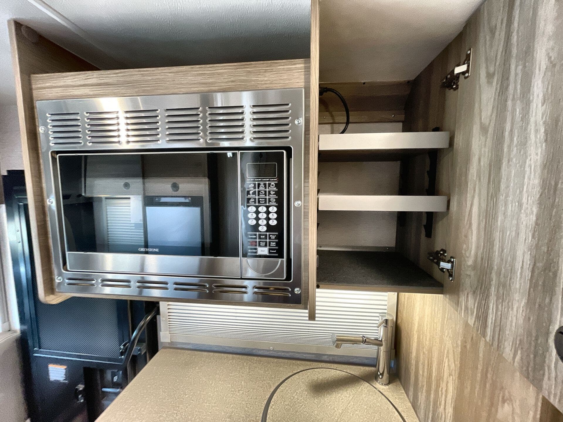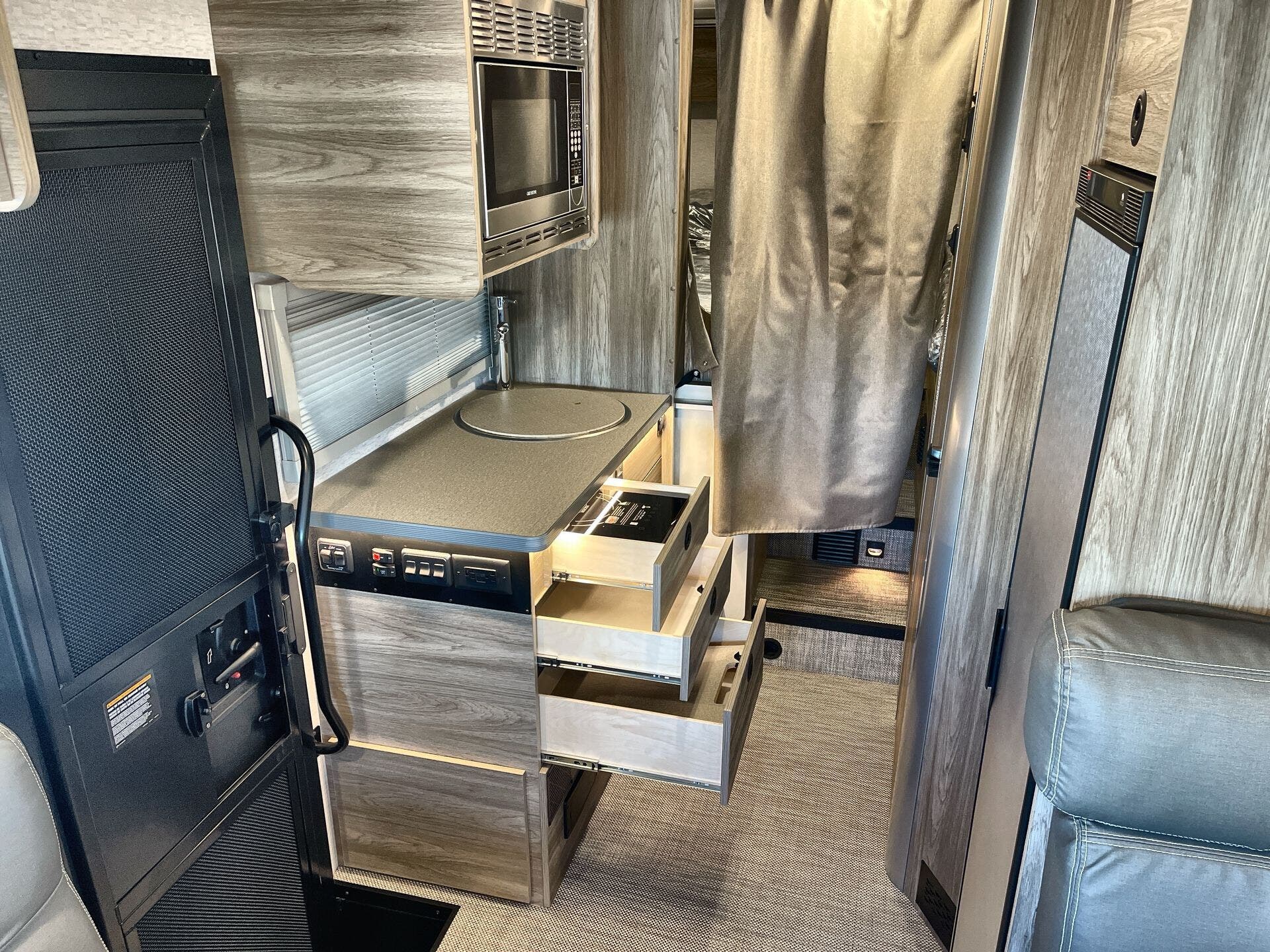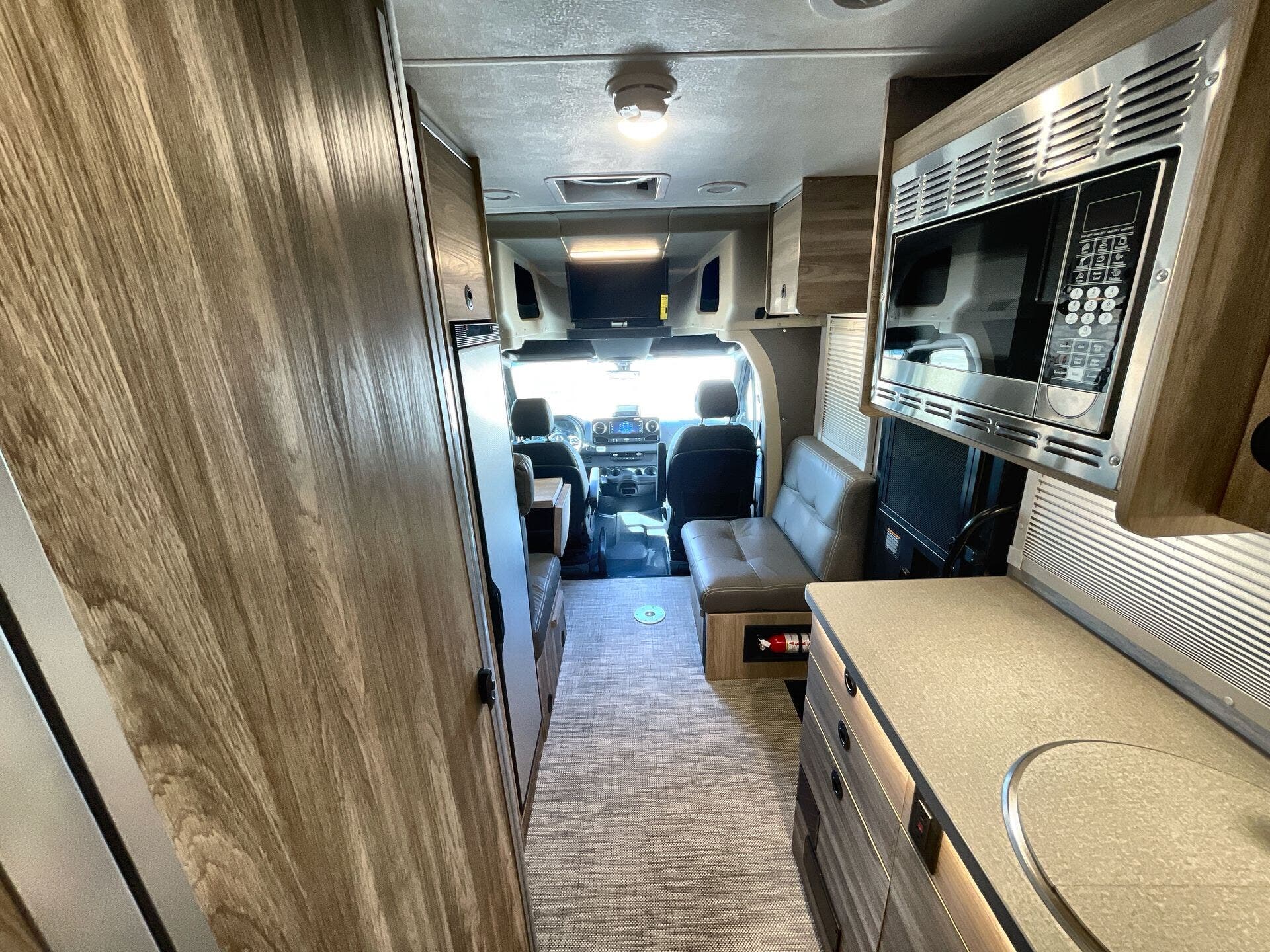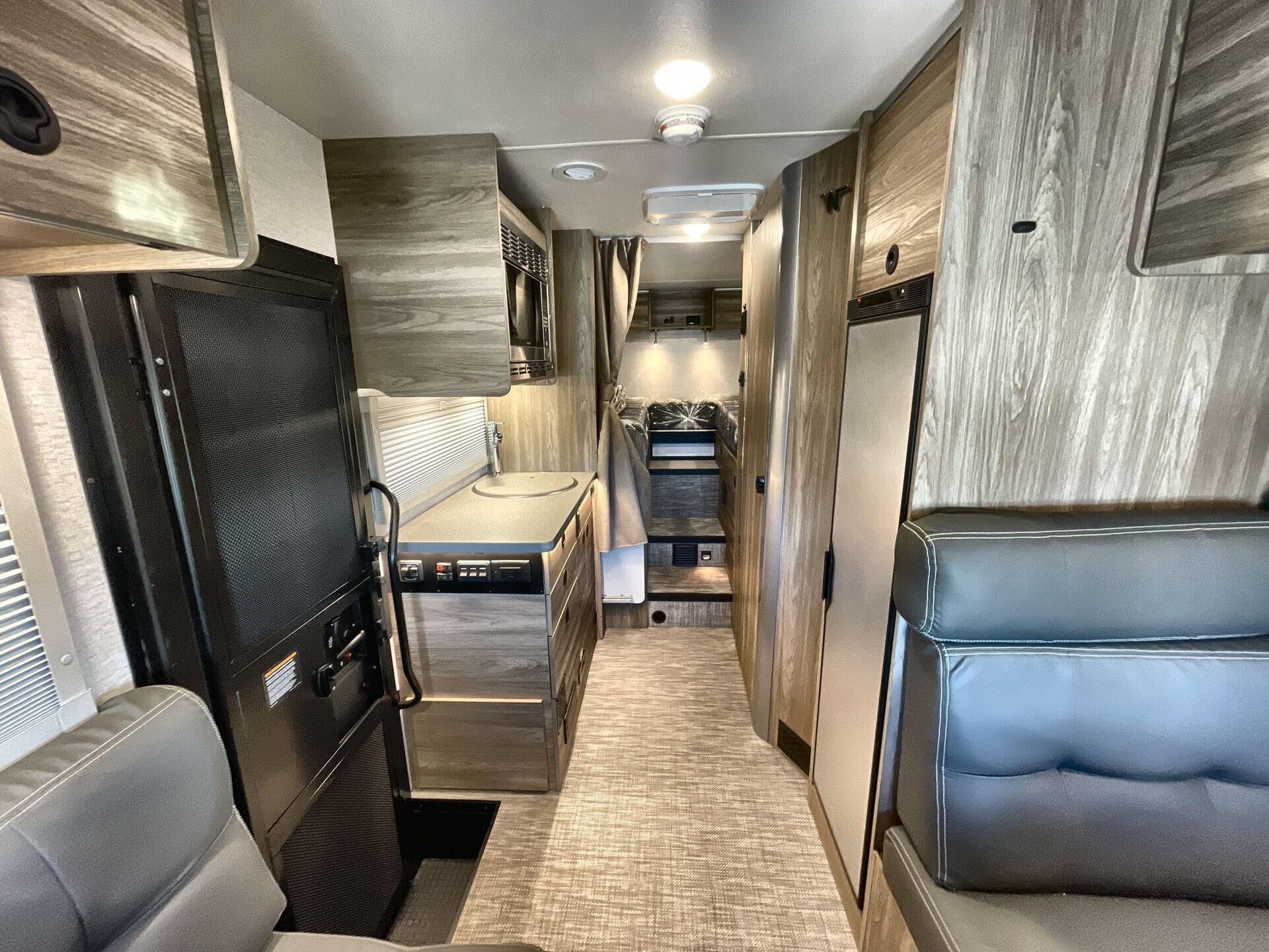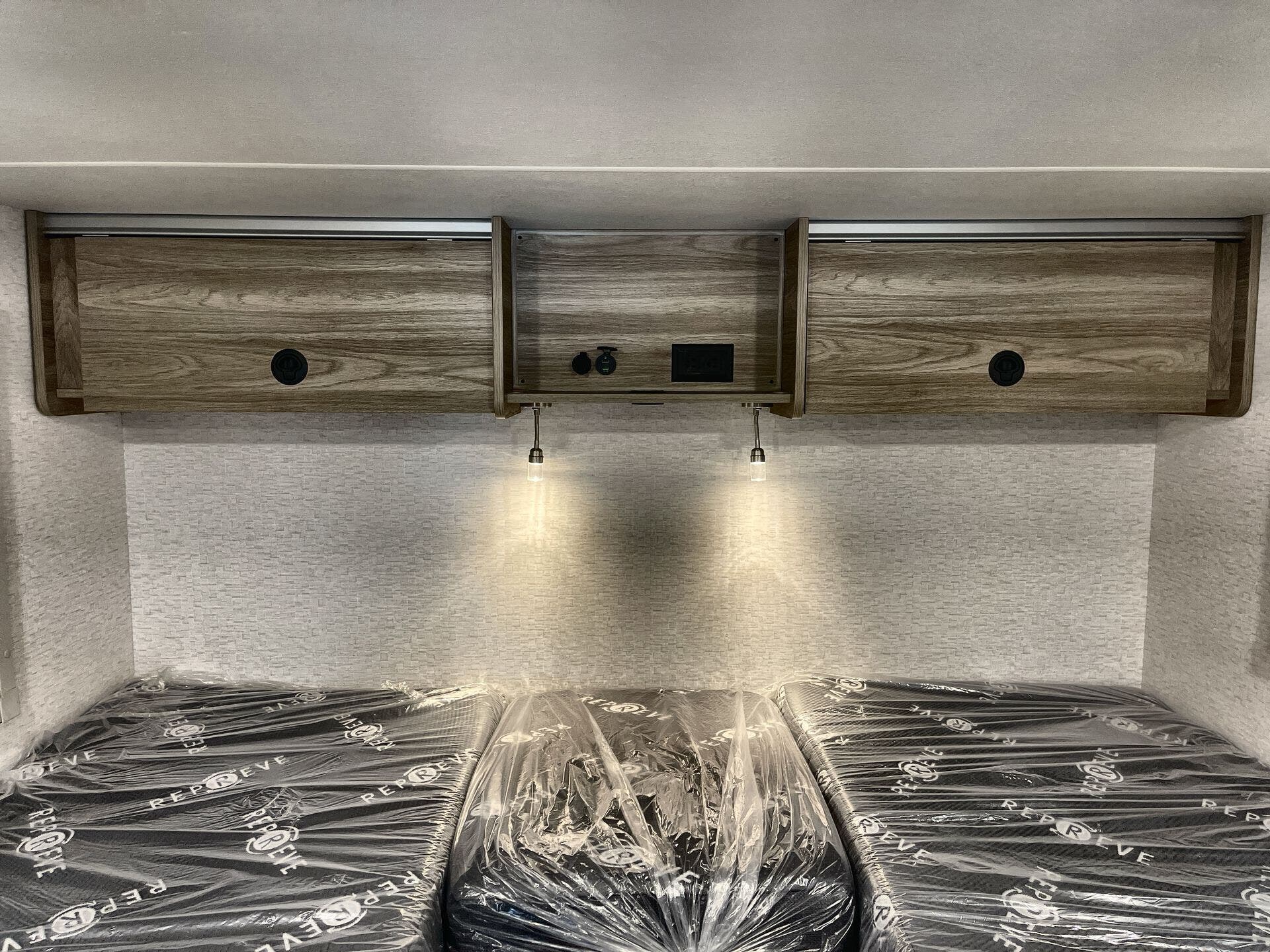 The 23B floorplan is tailored for practical living in a compact RV, balancing kitchen, living, and sleeping spaces for everyday travel and weekend trips. With three side doors, access is flexible and convenient from multiple points, whether you’re loading gear, stepping outside to grab coffee, or moving between the cab and living area. Inside, thoughtful storage and essential comforts help you stay organized on the road, while the single air conditioner keeps the living area comfortable in a wide range of climates.