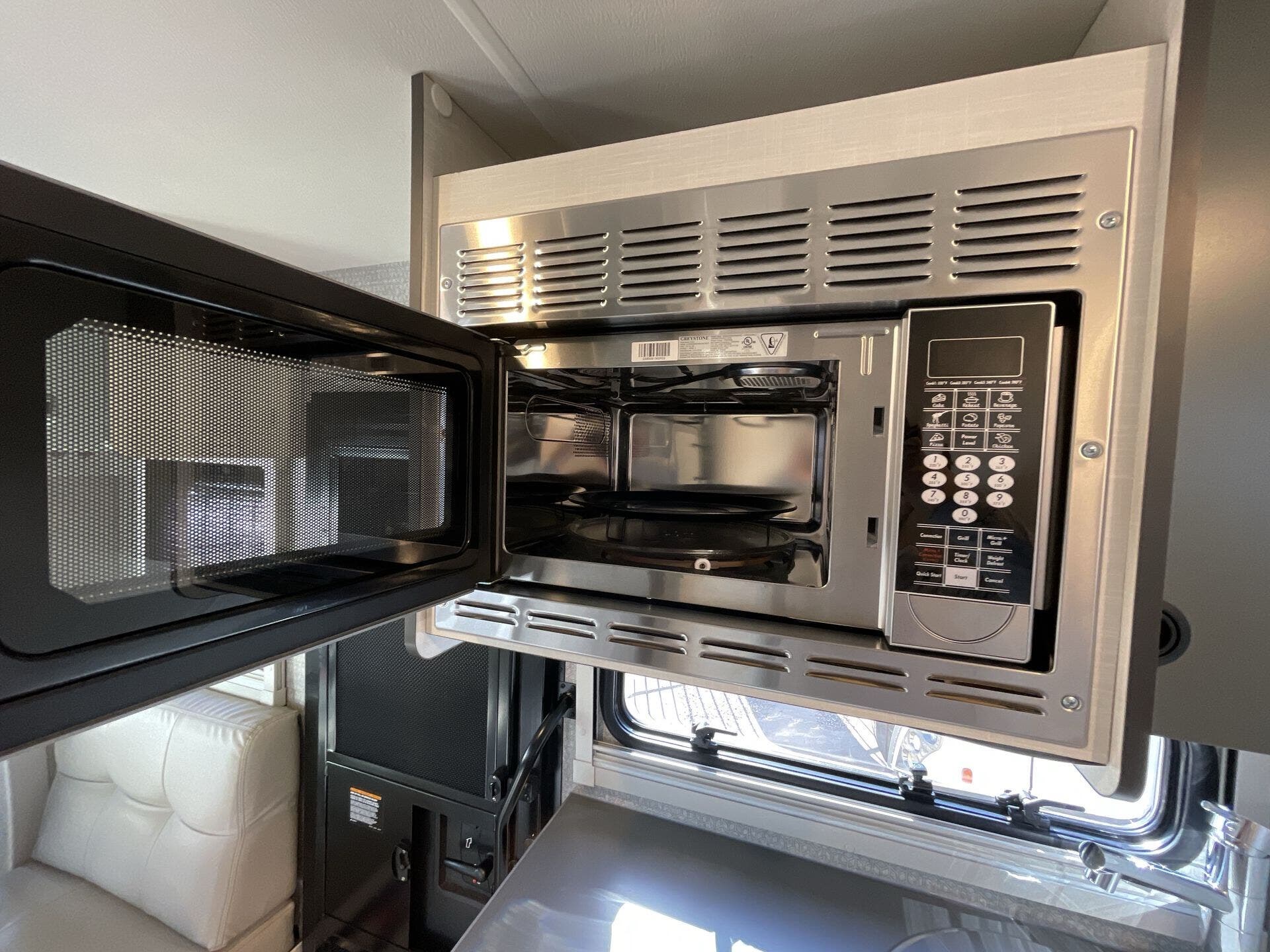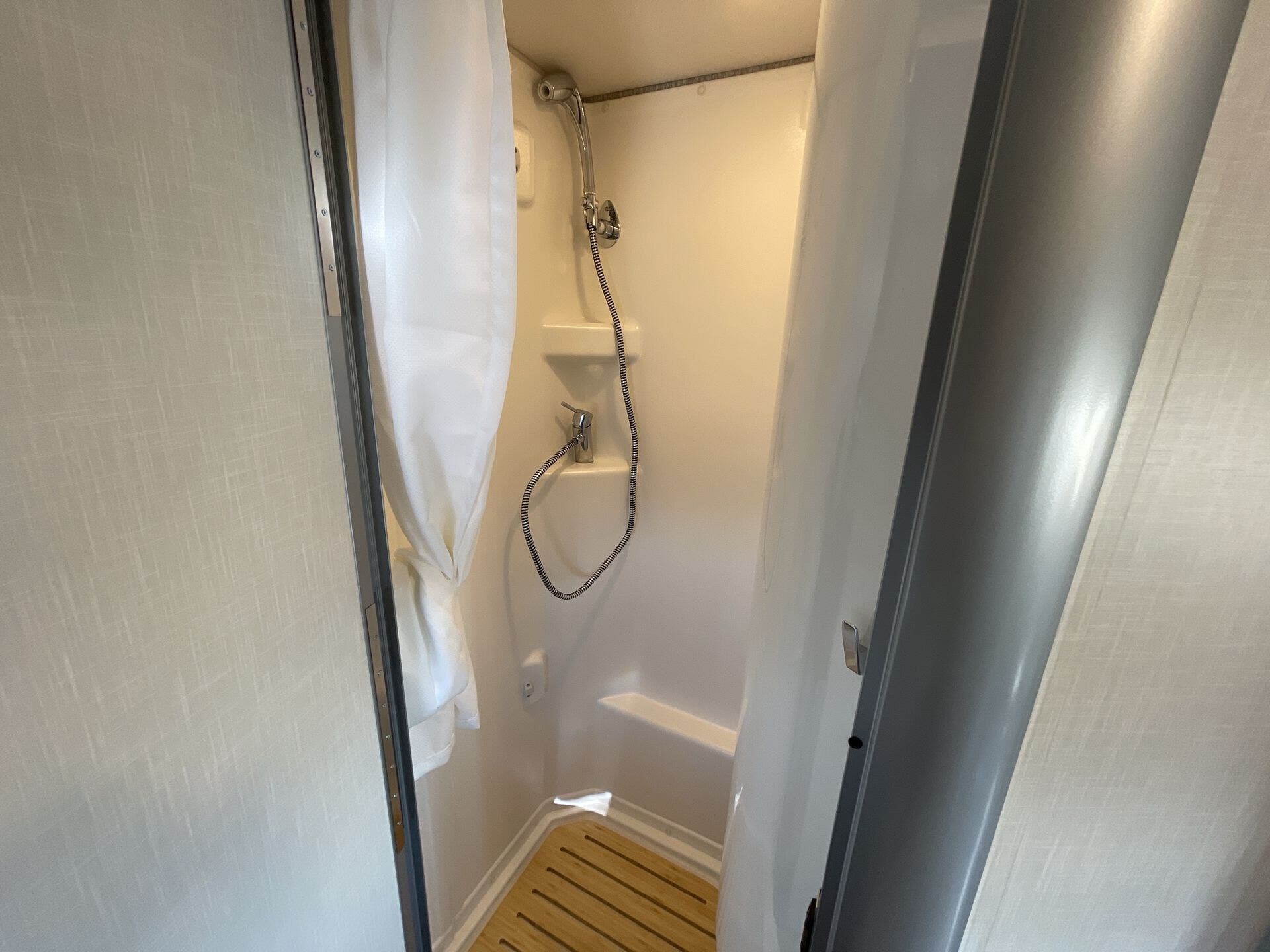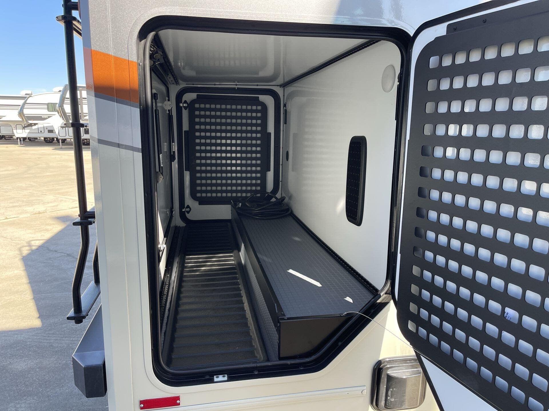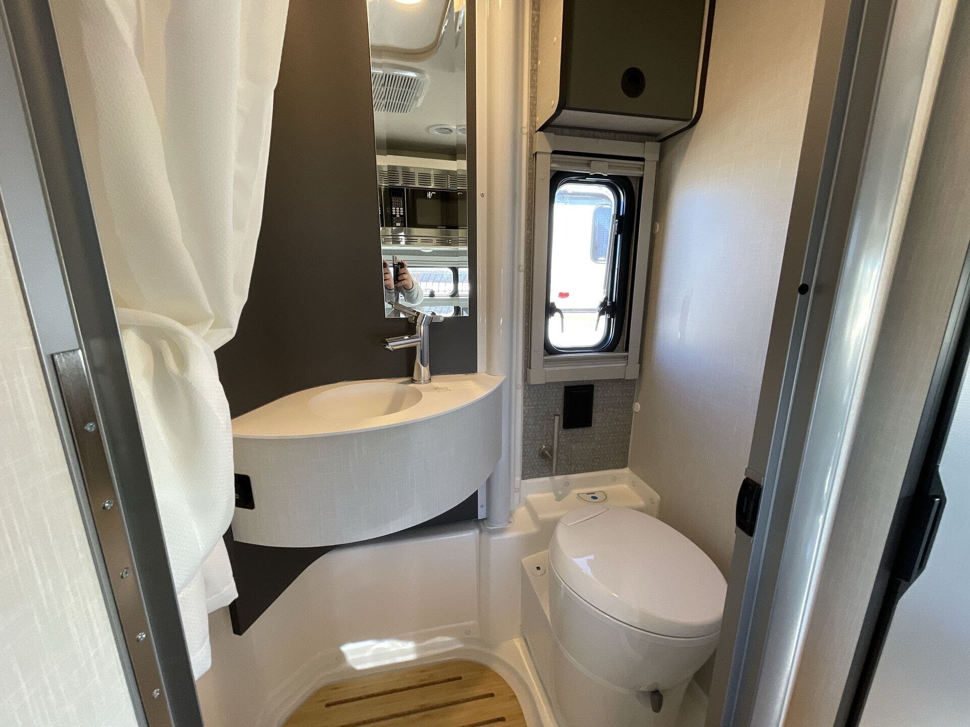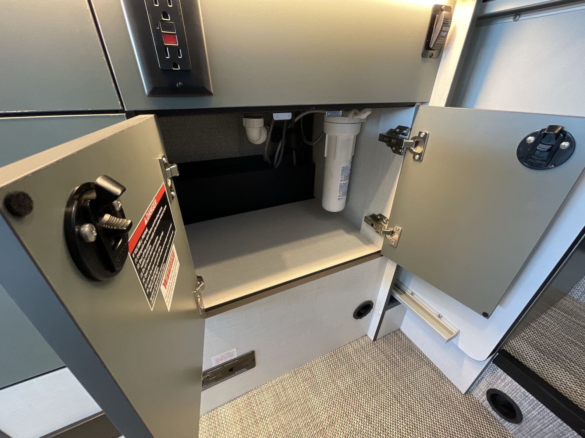 Inside, the Ekko 23B features a smart, versatile layout that maximizes every inch of space. Twin beds convert into a larger sleeping area, while the front lounge provides a comfortable place to dine, relax, or plan the next day’s route. The modern galley is fully equipped with quality appliances, ample storage, and efficient design, making meal prep easy whether you’re plugged in or off the grid. Premium materials, LED lighting, and contemporary styling give the interior a polished, upscale feel.