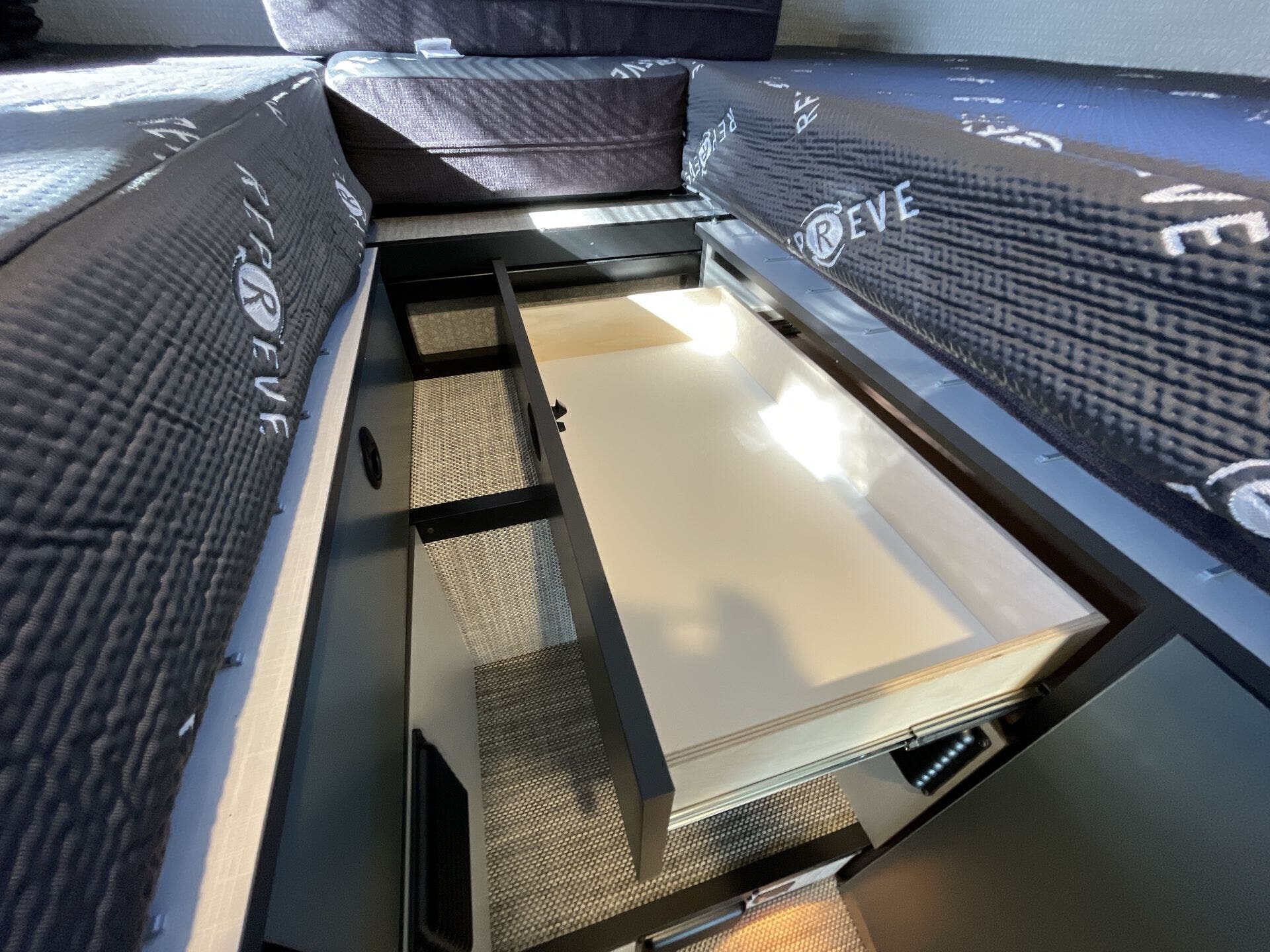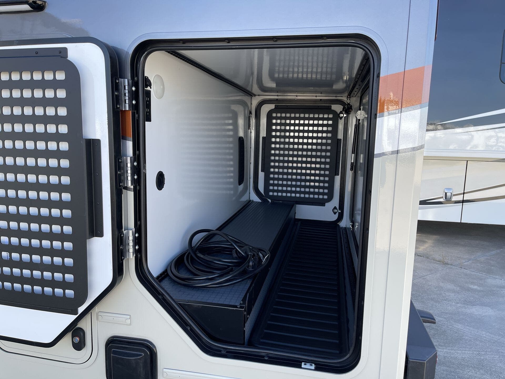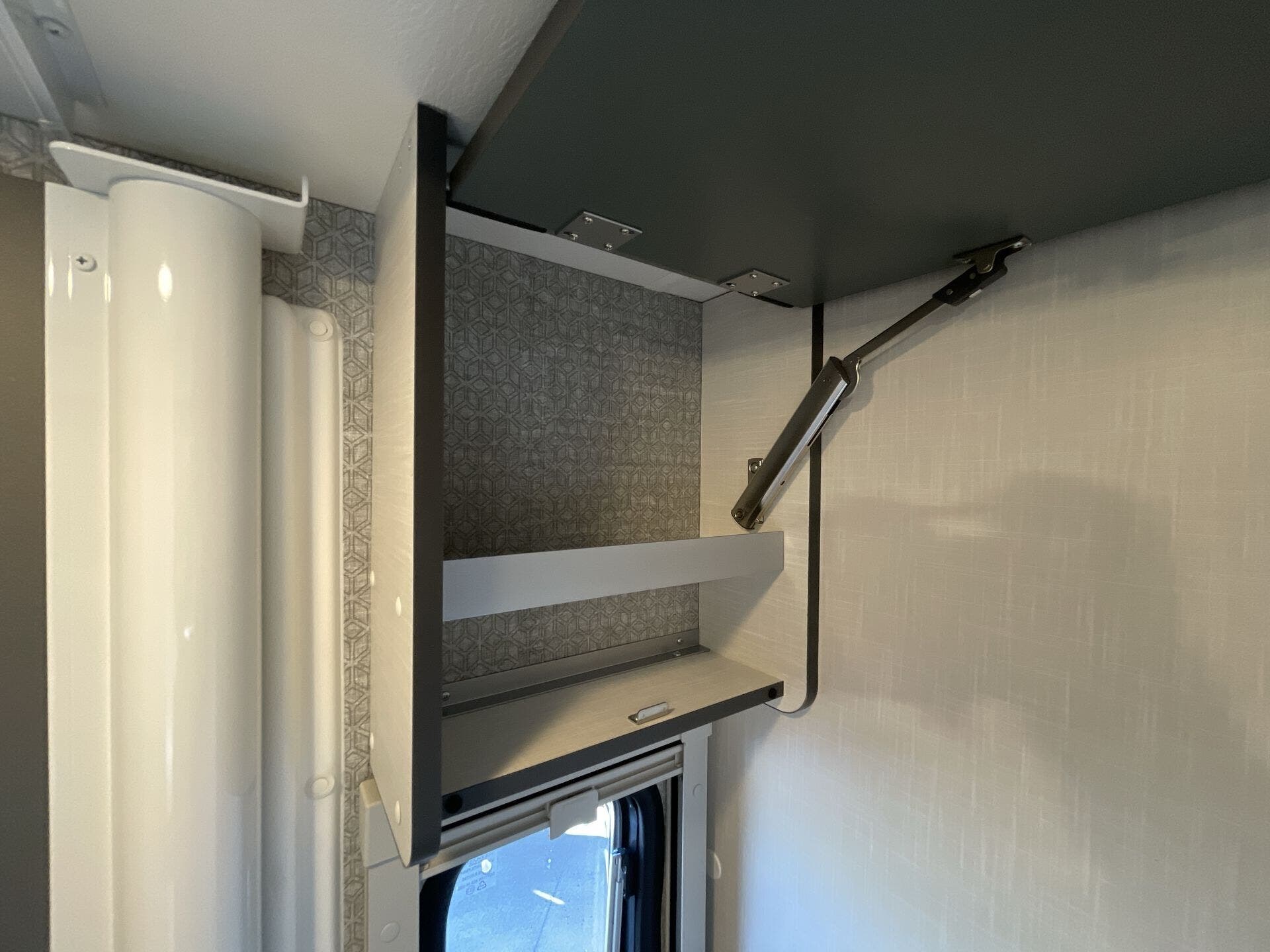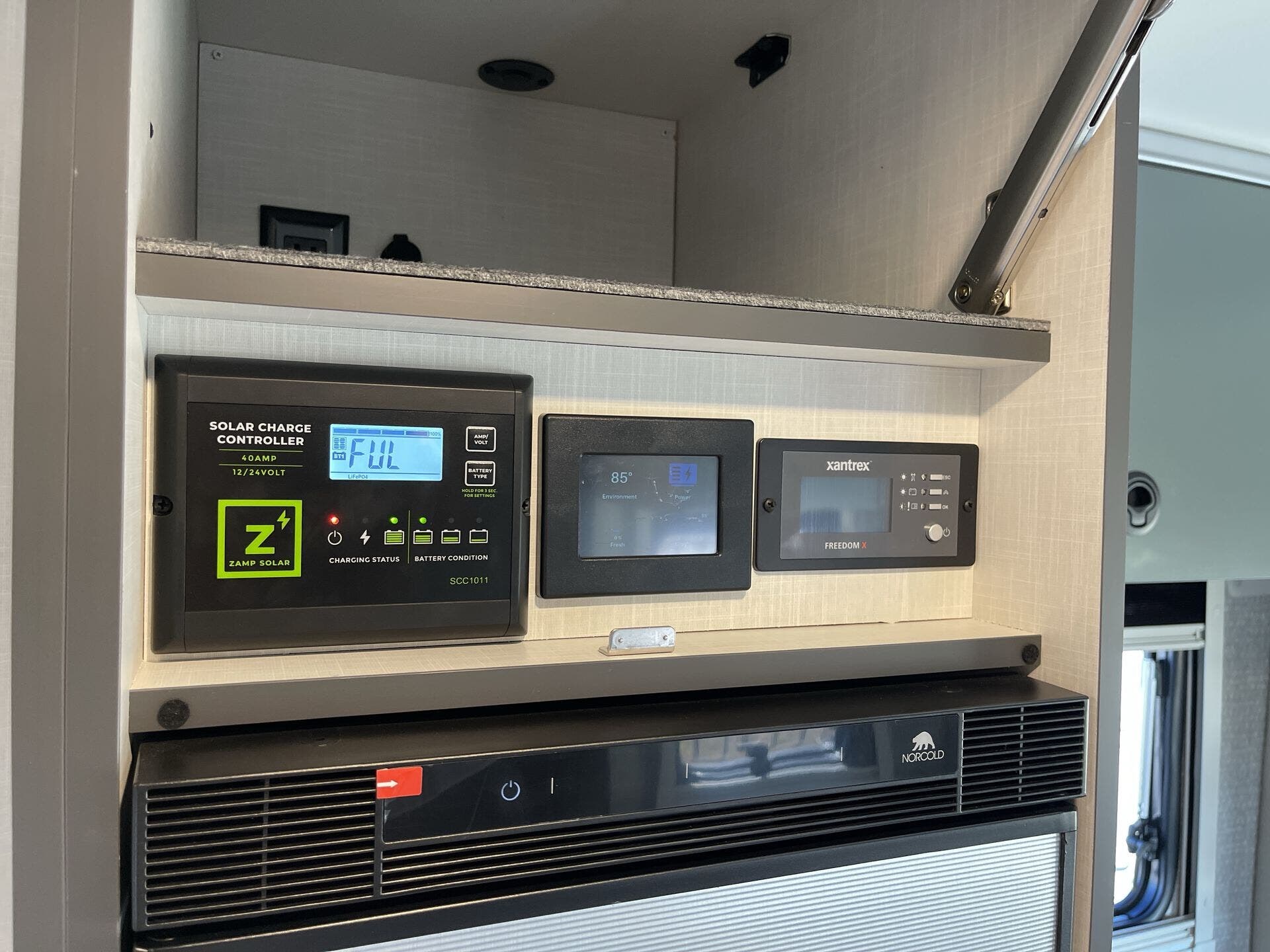 Inside, the Ekko 23B features a smart, versatile layout that maximizes every inch of space. Twin beds convert into a larger sleeping area, while the front lounge provides a comfortable place to dine, relax, or plan the next day’s route. The modern galley is fully equipped with quality appliances, ample storage, and efficient design, making meal prep easy whether you’re plugged in or off the grid. Premium materials, LED lighting, and contemporary styling give the interior a polished, upscale feel.
