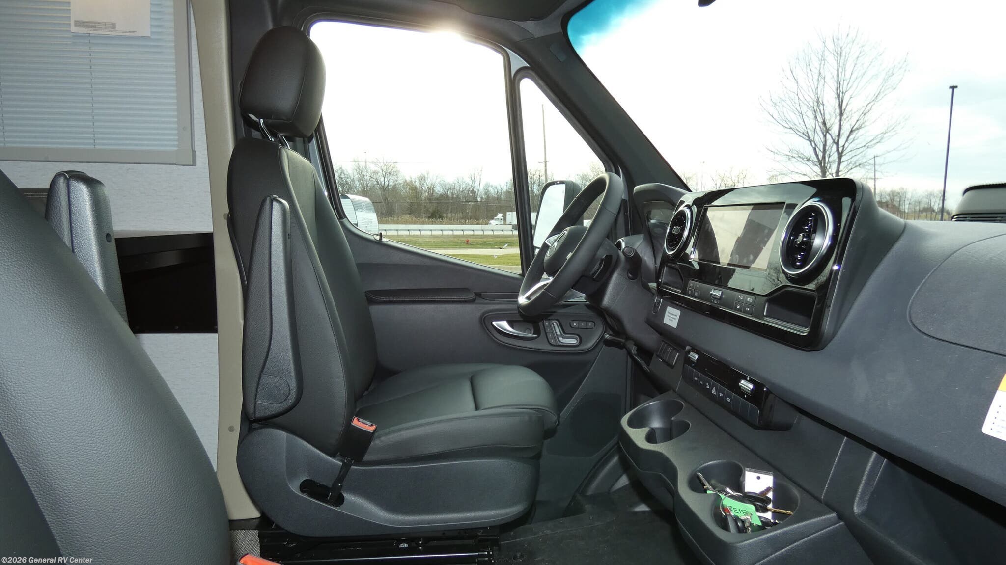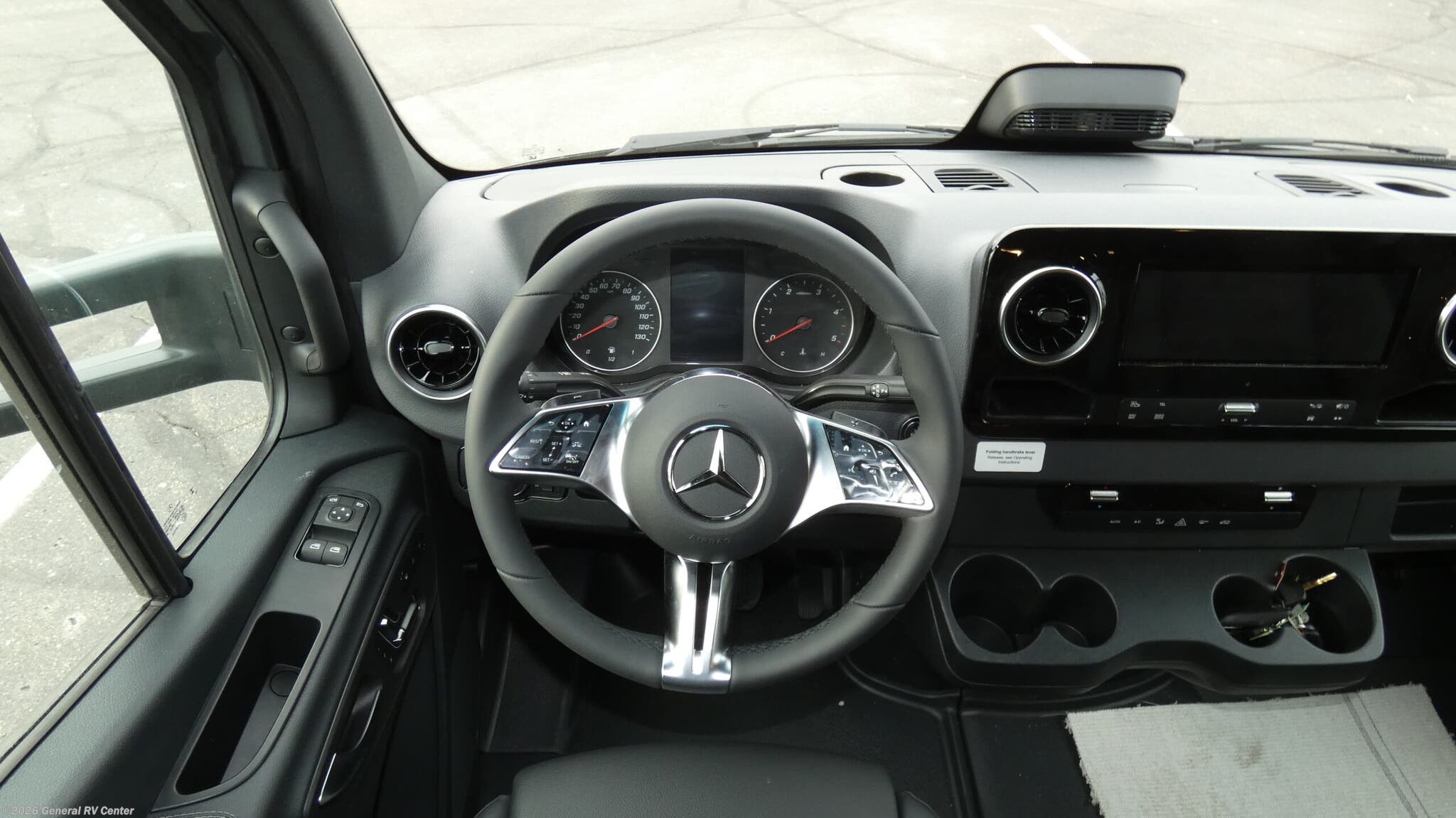 Winnebago EKKO Sprinter Class C diesel motorhome 23B highlights: Dry-Wet Bath Multifunctional Lounge Countertop Extension Gear Garage Twin Beds with WinnSleep System You will love the versatility found throughout this motorhome! Starting with the multifunctional lounge that can convert into four different modes. The flexible wet-dry bath has a pivoting lavatory wall, a 24" x 30" shower, an Oxygenics shower head to wash up, and even robe hooks to hang your towel afterwards. Keep your bellies full with delicious home cooked meals prepared in the versatile galley with the portable single burner induction range top, convection microwave oven, and 5.3 cu. ft. single door 12V refrigerator, plus a galley drawer/counter extension base. The heated gear garage has a L-track cargo tie down system with removable floor liner, 110V/12V charging ports and LED lighting to see clearly day or night! If you're ready to start your RV adventure then you need to check out this Winnebago EKKO Sprinter Class C diesel motorhome! Experience a versatile base camp with belted seating for four, sleeping for three or more with the added optional pop-top, deep gear garage, and flexible living space. It has enhanced off-road capabilities by being built on the Mercedes-Benz AWD Sprinter chassis that has elevated ground clearance and all-terrain tires for low-traction environments. Your driving comfort and safety are also enhanced with a MBUX multimedia system with navigation, Apple CarPlay and Android Auto, a digital rearview mirror, active lane keeping assist, DISTRONIC PLUS adaptive cruise control, attention assist, and much more. Come see what else it has to offer!