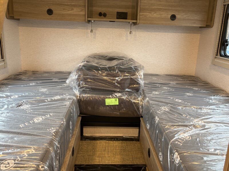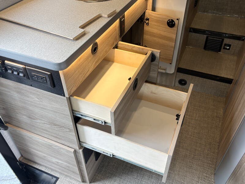 Features Include: Two Alternators, All Terrain Tires, Spare Tire, Mud Flaps, Driver Alert, Fog Lamps, Intersection Assist, Lane-Keeping Assist, Rain-Sensing Wipers, Aluminum Cab Steps, Sunvisors, Power Windows, Porch Light, Entry Assist Bar, LED Ceiling Lighting, Accent Lighting, Vinyl Flooring, Acrylic with Screen, Cassette Shade, Deluxe Power Vent, Remote Dining, Pantry, Laminate Countertops, Stainless Steel Sink, Sink Cover, Systems Center, Satellite Ready, Entertainment System, USB Ports Sleeping, Room Divider Curtain, Flex Bed Kit, Reading Lights, 100v 12v USB Outlets, Wardrobe, Storage Drawers, Metal Clothes Rod, Medicine Cabinet, Mirror, Molded Round Sink, Shower Wall Surround, Shower Curtain, Battery Heat Package, Bluetooth, 30-Amp Service Cord, 80-Amp Charger, GFCI Circuit, 2500w LP Generator, Two 20# LP Bottles, Truma VarioHeat, 13.5k AC, All Weather Prepped, Roof Access Ladder