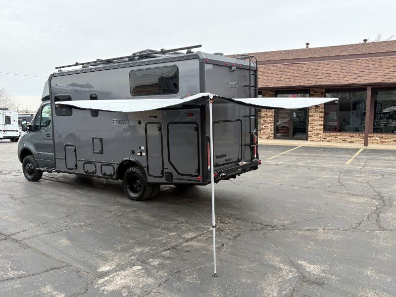 Introducing the 2026 Winnebago EKKO AWD – a remarkable Class C RV built to elevate your travel adventures with style and efficiency. This RV combines Winnebago's renowned craftsmanship with all-weather readiness, making it perfect for road trips, wherever the path may lead. Engineered on the robust Mercedes-Benz AWD Sprinter Chassis, the EKKO is powered by a formidable 2.0L HO 4-Cylinder Turbo Diesel engine paired with a 9-speed automatic transmission, delivering both power and fuel efficiency. The vehicle is B20 diesel compatible, further enhancing its eco-friendliness. **Performance Features:** - Mercedes-Benz AWD Sprinter Chassis - 2.0L HO 4-Cylinder Turbo Diesel engine - 9-Speed Automatic with Overdrive - Stylized Performance Wheels with All-Terrain Tires - Mud Flaps and a Spare Tire - 5000# Hitch with 7-Pin Connector - Two Alternators for enhanced power supply **Safety and Convenience:** - 4-Wheel Anti-Lock Disc Brakes - Active Braking Assist and Lane-Keeping Assist - Blind Spot Monitoring and Driver Alert System - Distronic Plus Adaptive Cruise Control - High Mount Brake Lights, LED Performance Headlamps - Rain-Sensing Wipers and Traffic Sign Assist - Power Defrost Side-Mirrors and Power Assist Steering **Cab Features:** - Aluminum Cab Steps with Intelligent Access System - Digital Rearview Mirror and Sunvisors - Leatherette Cab Seats with Memory, Power Heated Seats - MBUX Touchscreen System featuring SiriusXM, WiFi Hotspot - Tilt Telescoping Steering Wheel and Power Windows **Comfortable Living Spaces:** - Power Awning with Bluetooth-Controlled LEDs and Porch Light - LED Ceiling Lighting complemented by Accent Lighting - Vinyl Flooring and Tinted Dual-Pane Euro Windows - RAM Tough-Track Mount and Remote-Controlled Deluxe Power Vent **Dining and Kitchen:** - Dinette Seating for 3 with Adjustable Removable Table - Stainless Steel Sink with Sink Cover - 12v 5.3cf Refrigerator Freezer - Portable Induction Cooktop and Convection Microwave - Outdoor LP Connection for versatile cooking options **Entertainment and Connectivity:** - Color Touchscreen Systems Panel for easy control - Amplified Digital HDTV Antenna and Satellite Ready - USB Ports and Entertainment System **Sleeping Arrangements:** - WinnSleep Twin Beds 32x80 with Flex Bed Kit - Room Divider Curtain and Reading Lights - Wardrobe with Storage Drawers and Metal Clothes Rod - Heated Gear Garage for extra storage space **Bathroom Facilities:** - Pivot Wall Dry/Wet Bath - Molded Round Sink and Oxygenics Shower Head - Swivel Cassette Toilet with Shower Wall Surround **Advanced Mechanicals:** - Total of 530w Solar Panels and 320Ah Lithium Battery - 2000w Pure Sine Wave Inverter with Bluetooth Battery Heat Package - Truma VarioHeat and AquaGo Tankless Hot Water System - 2500w LP Generator and two 20# LP Bottles - Heated Above-Floor Holding Tanks **Exterior Build:** - All-Weather Prepared for varied climates - Roof Access Ladder for convenience Explore the world with unparalleled comfort and confidence in the 2026 Winnebago EKKO AWD. Your adventures await! ?????