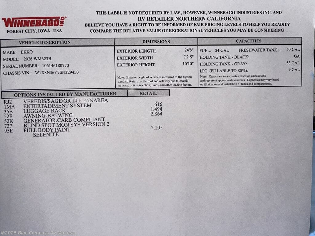 Request More Info on this 2026 Winnebago Ekko Sprinter 23B Offered for sale by Blue Compass RV Manteca