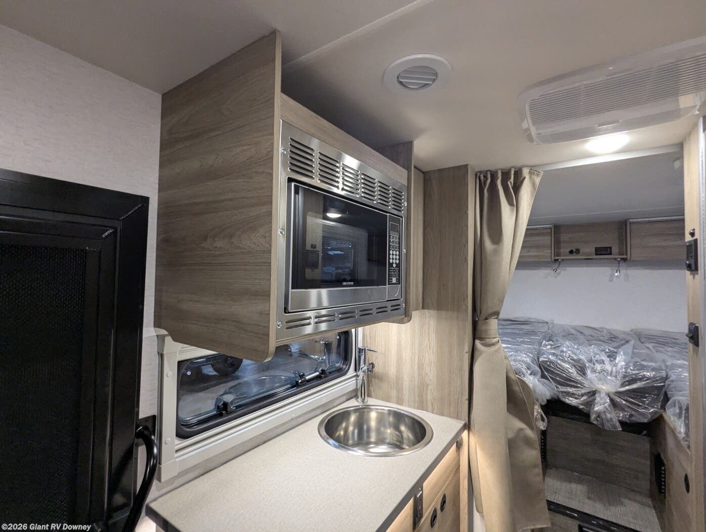- Functional Galley & Wet Bath including a refrigerator, cooktop, sink with solid surface countertop, ample storage, and a dedicated wet bath with shower and cassette toilet for full convenience on the road.